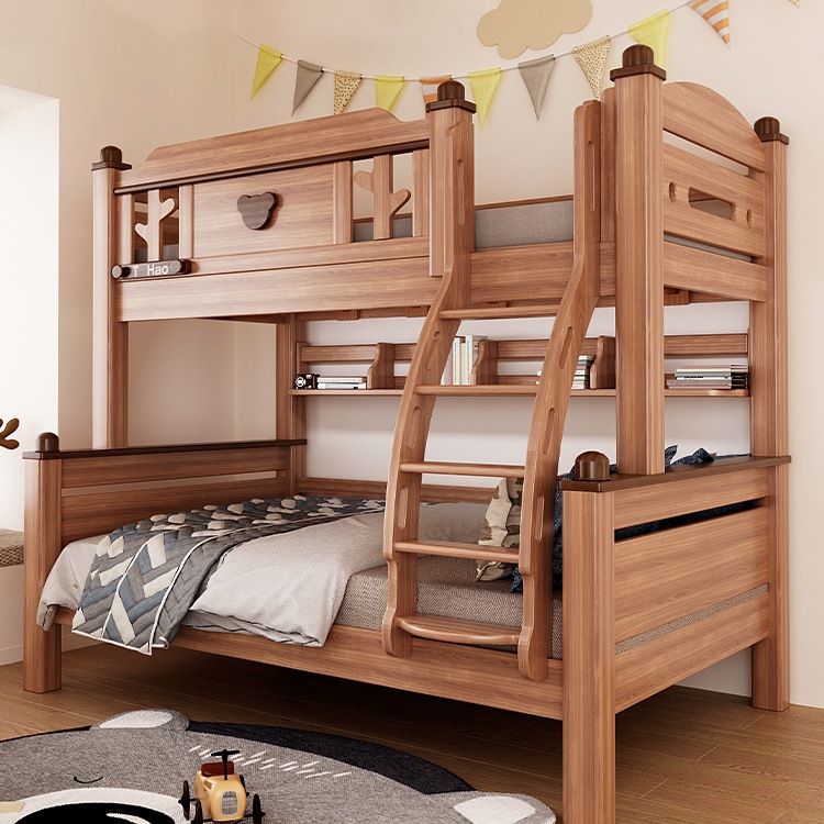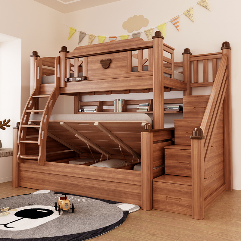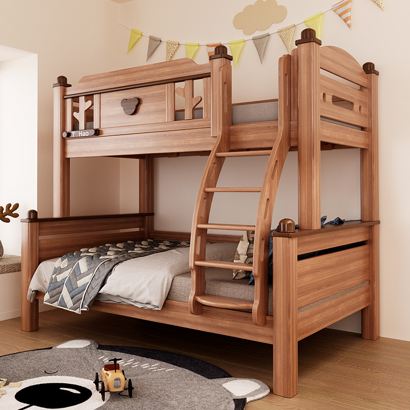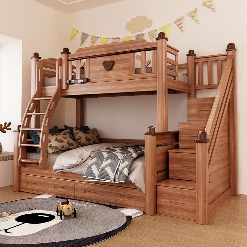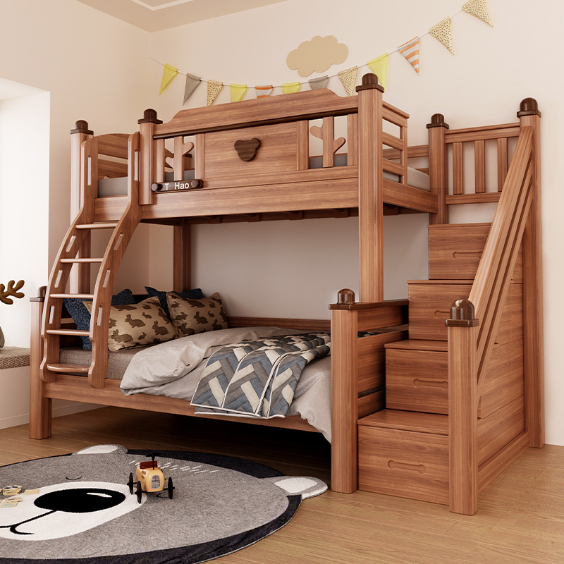 단단한 나무 침대 이층 침대 나무 왁스 기름 어머니 침대 작은 아파트 침대 어린이 침대 상단과 낮은 침대 Liriodendron 나무 높고 낮은 침대스토어 가기