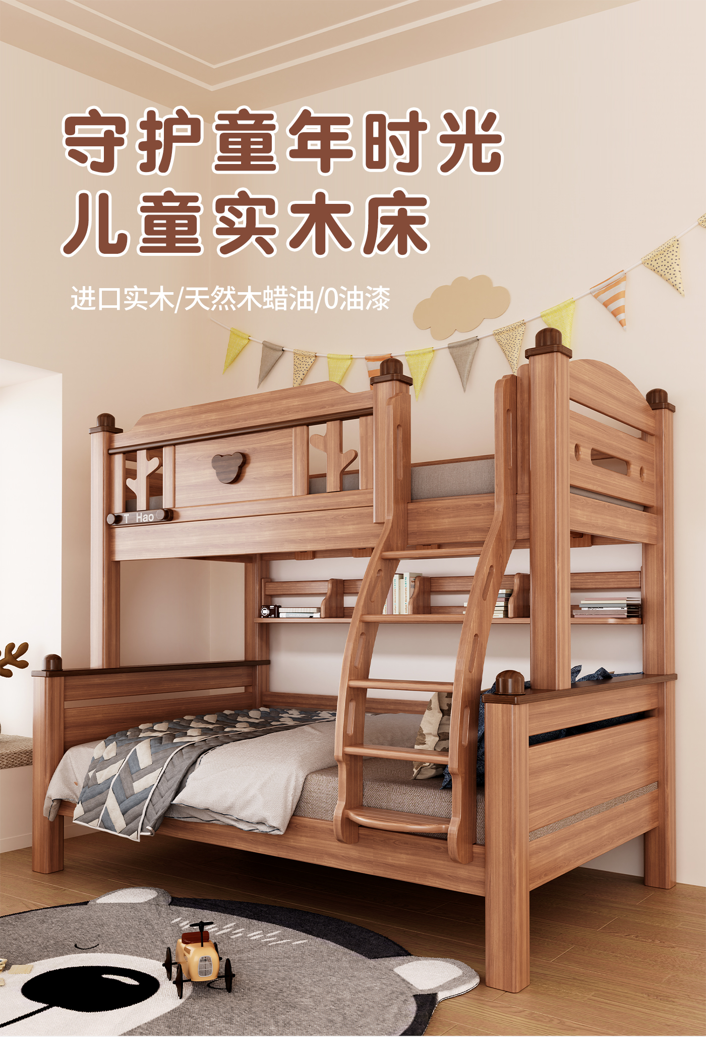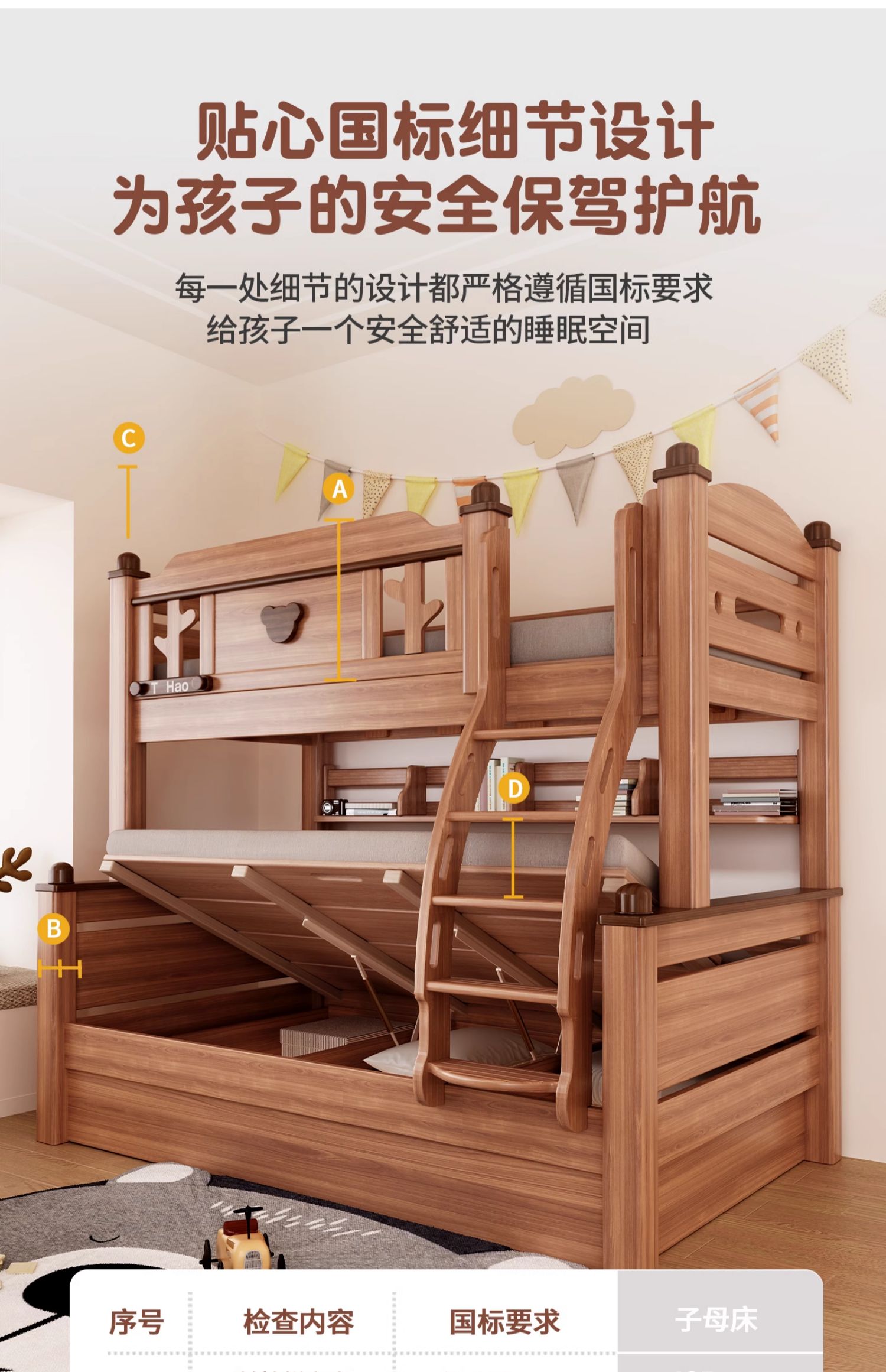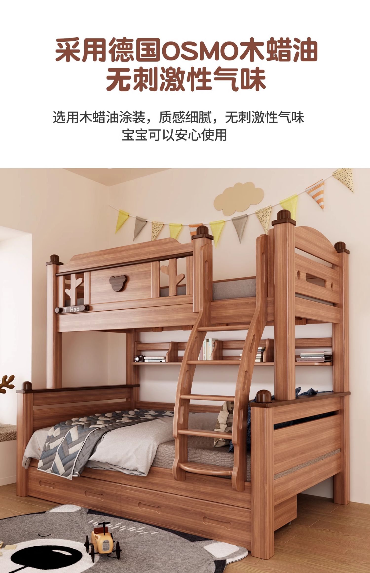 단단한 나무 침대 이층 침대 나무 왁스 기름 어머니 침대 작은 아파트 침대 어린이 침대 상단과 낮은 침대 Liriodendron 나무 높고 낮은 침대스토어 가기