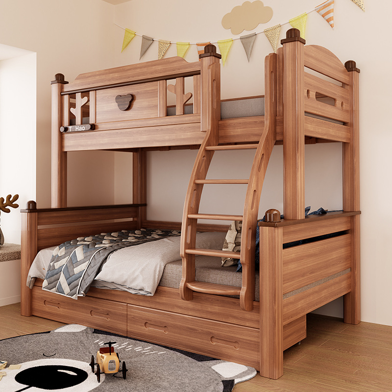 단단한 나무 침대 이층 침대 나무 왁스 기름 어머니 침대 작은 아파트 침대 어린이 침대 상단과 낮은 침대 Liriodendron 나무 높고 낮은 침대