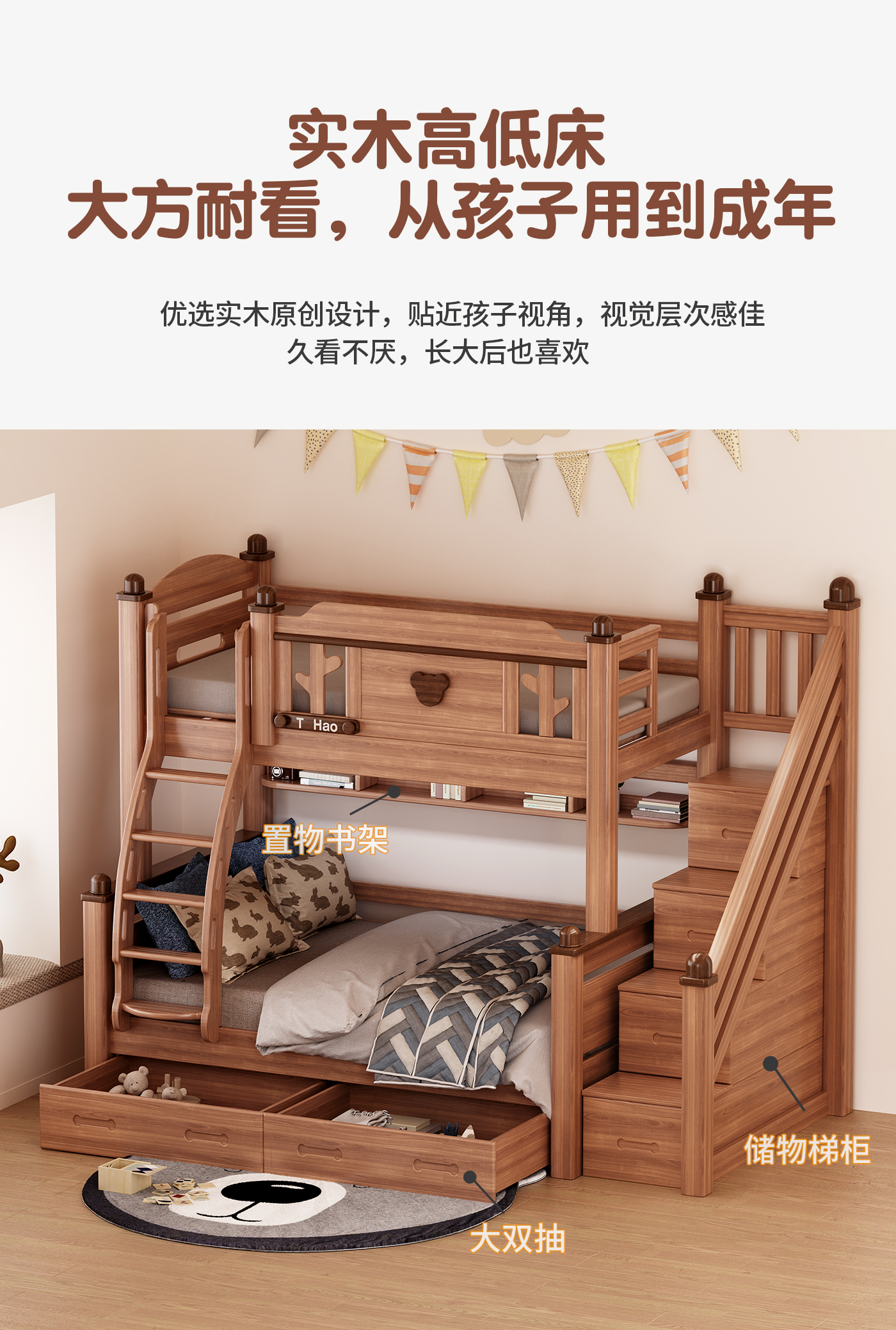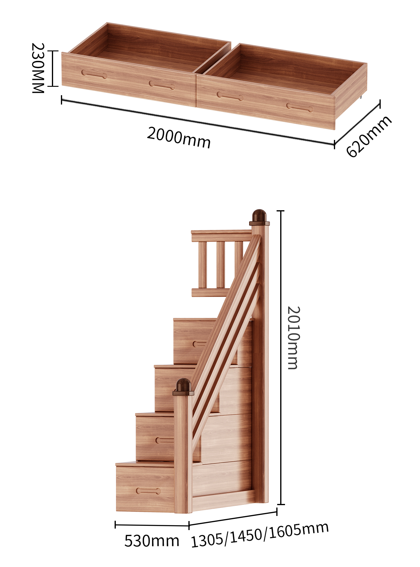 • 상하침대 + 계단사다리 + 더블서랍 + 책장
