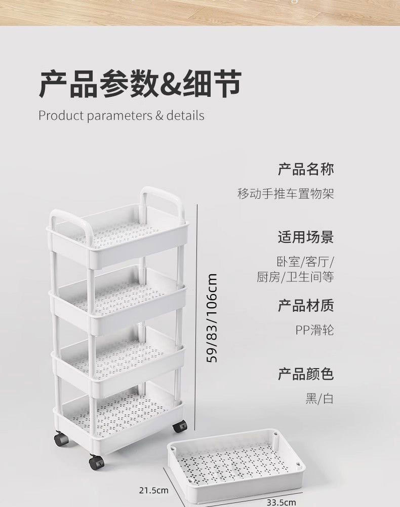 플라스틱 트롤리 스토리지 랙 바닥 주방 욕실 다층 스낵 스토리지 랙 이동식 갭 스토리지 랙