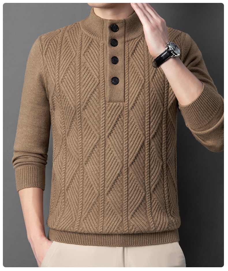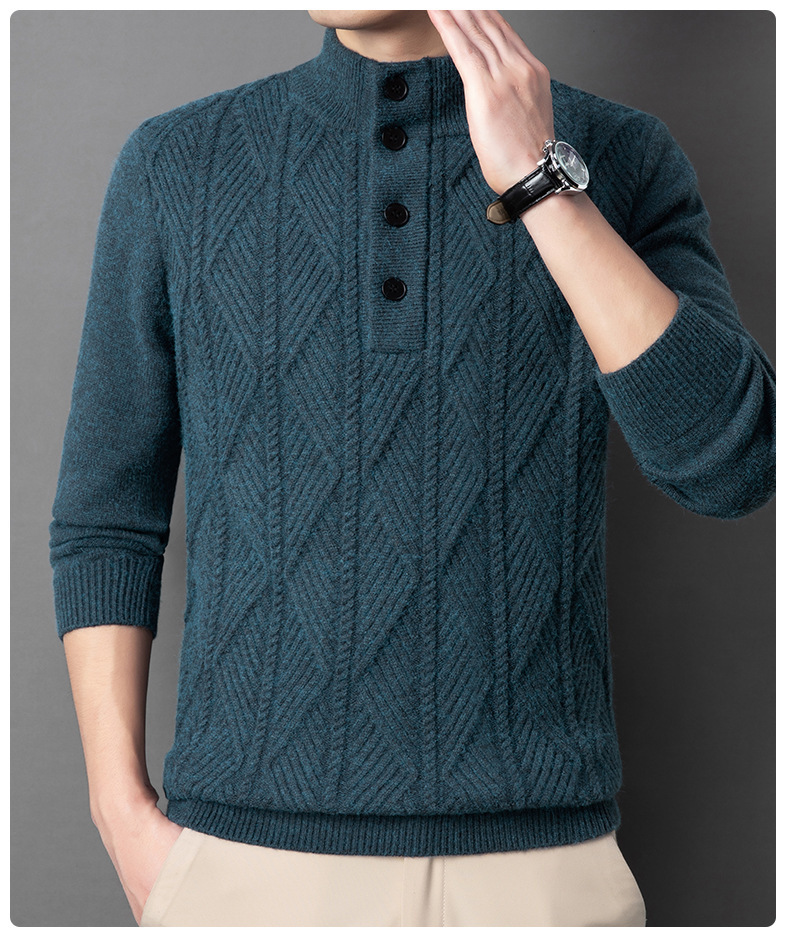 국경 간 대외 무역 니트 셔츠 남자 스웨터 2024 가을과 겨울 새로운 남자의 따뜻한 베이스 셔츠 자카드 패션 탑