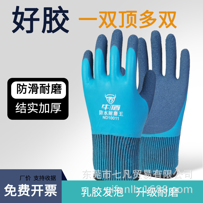 Niu Dun 노동 보호 장갑 착용 방지 작업 미끄럼 방지 두꺼운 비 냄새 손 남성 건설 현장 수입 접착제 전체 접착제 디퍼 방수스토어 가기