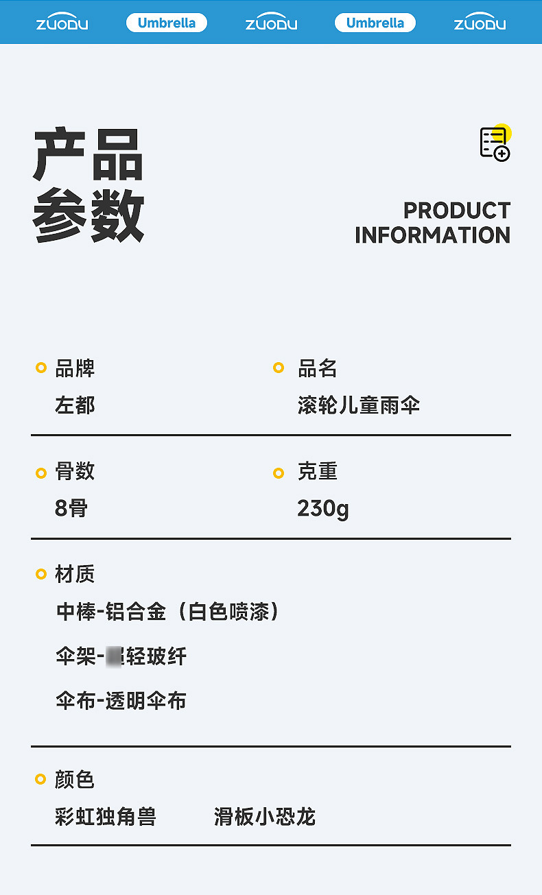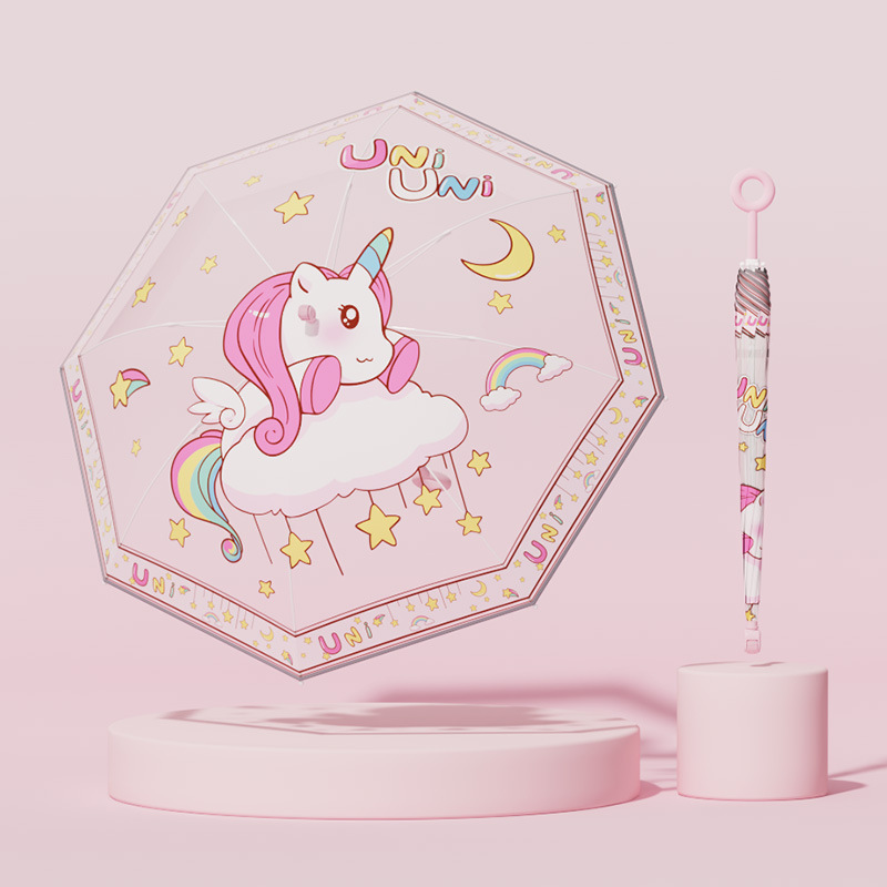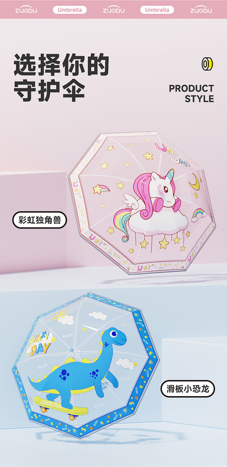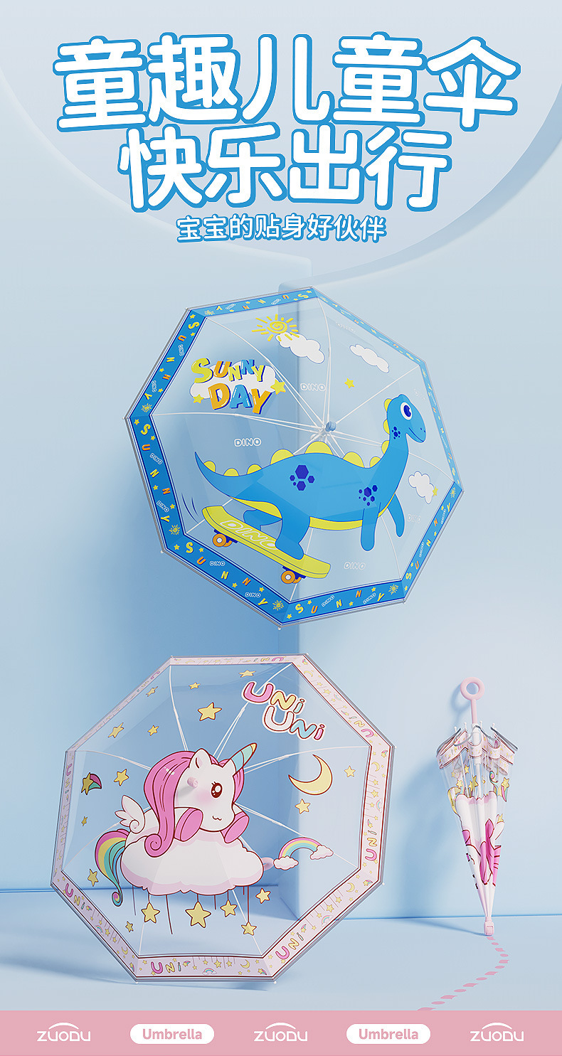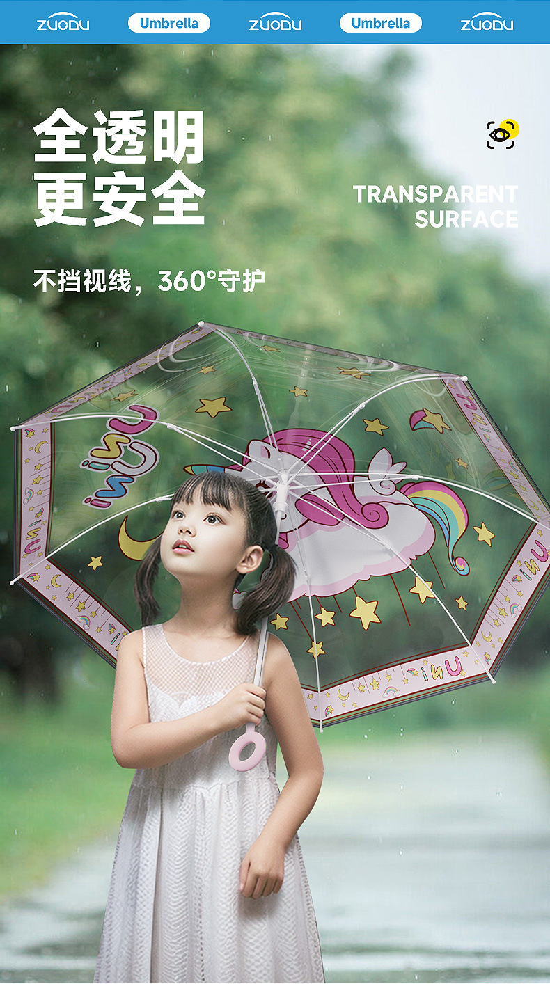 ZUODU Left Roller 어린이 우산 투명 우산 소년과 소녀 긴 손잡이 학생들이 학교에 다닌다 유치원 국경 신제품