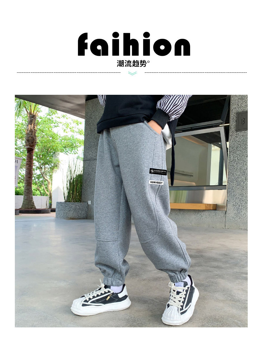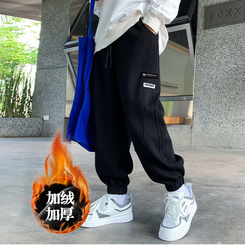 봄 가을과 겨울 폭발 기모 두꺼운 단색 다리 소년의 캐주얼 바지 느슨한 큰 바지 트렌디스토어 가기
