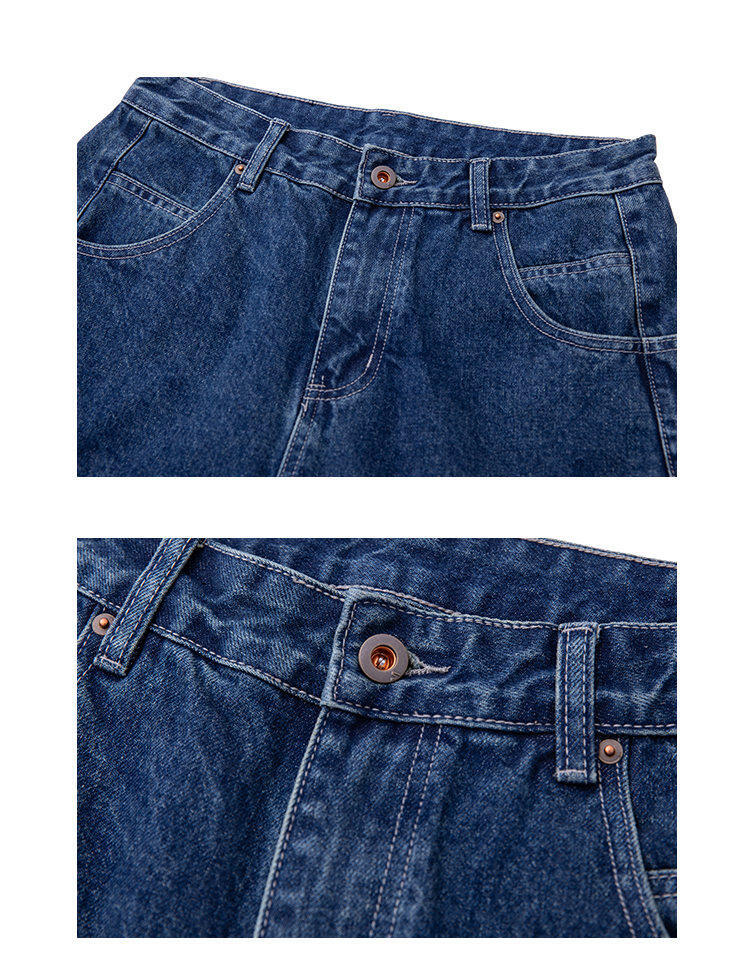 베이지에 남성복 아메리칸 스타일 트렌디 브랜드 2025 가을 신상 워싱 웨이브 밑단 데님 팬츠 남성 레트로 캐주얼 팬츠스토어 가기