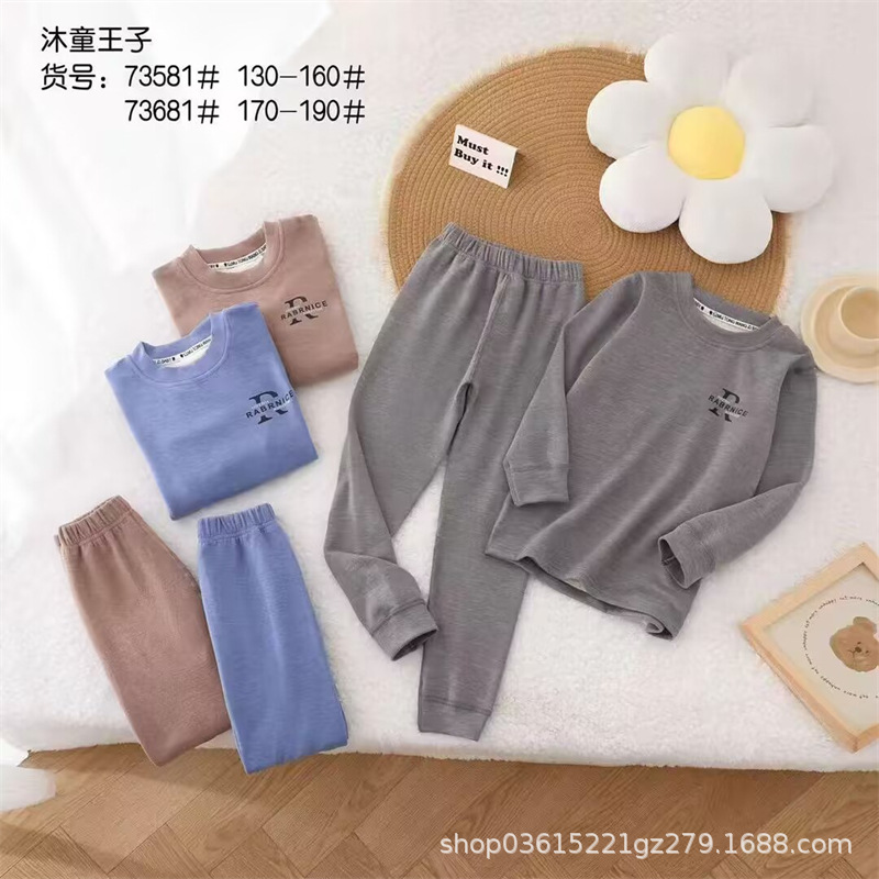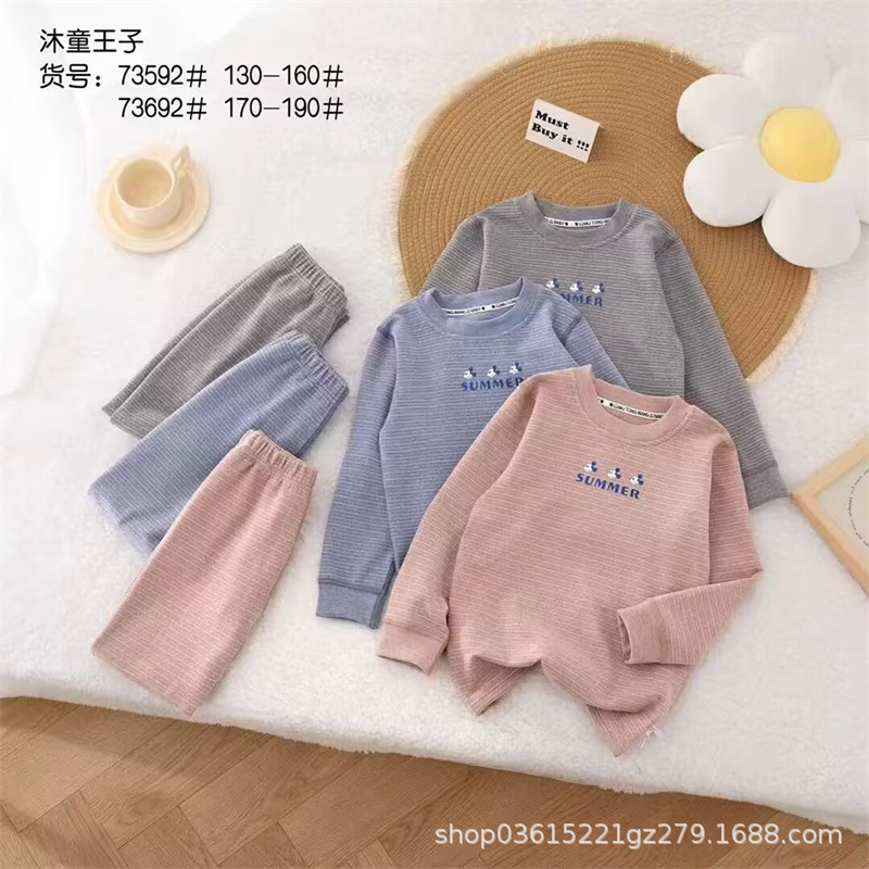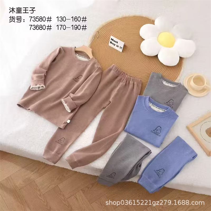 Mu Tong Prince Dove 벨벳 따뜻한 세트 어린이 홈 옷 어린이 세트 어린이 열 속옷 도매스토어 가기