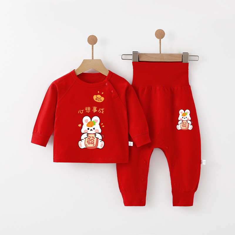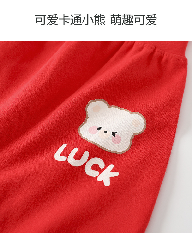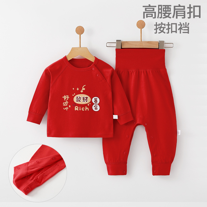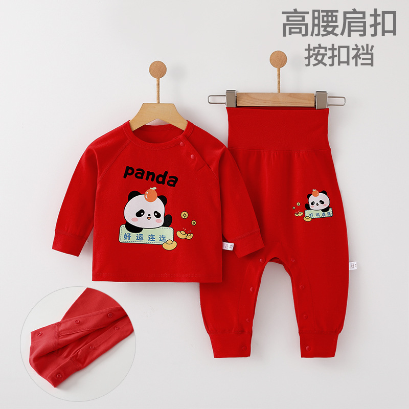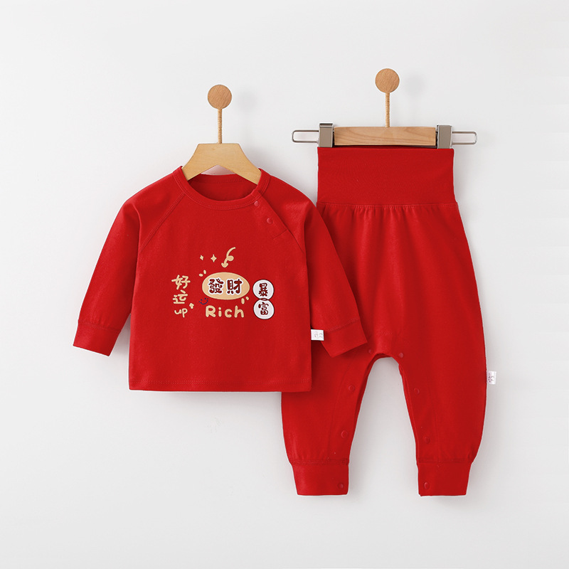 새해 빨간 어린이 속옷 소녀와 소녀 아기 높은 허리 배꼽 보호자 가을 옷 가을 바지 스냅 크로 치 무료 세트