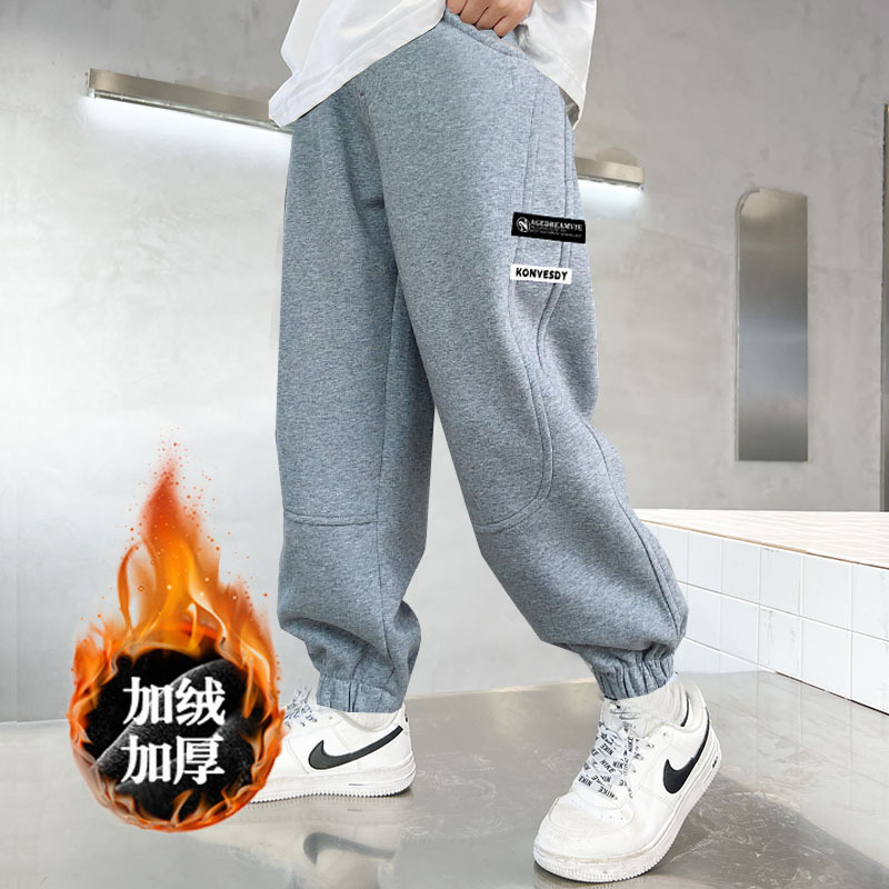 소년 중다 어린이 원피스 벨벳 기모 두꺼운 바지 봄 가을과 겨울 새 번들 다리 캐주얼 루즈 바지