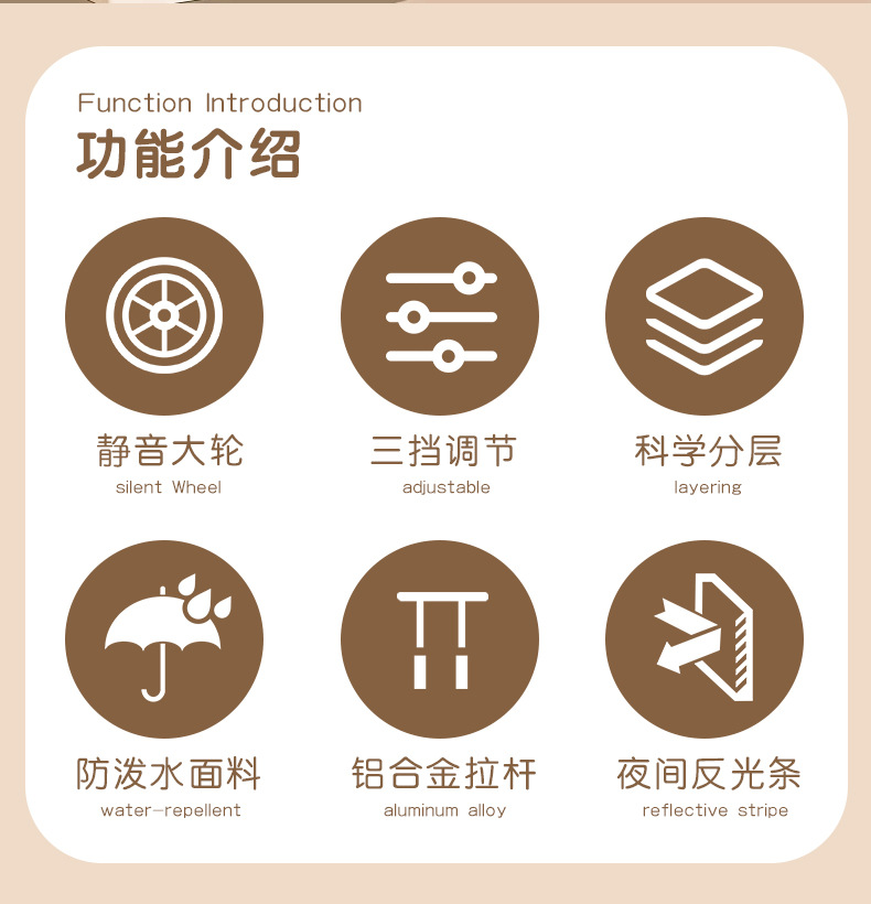 • 갈색 책가방 + 업그레이드된 대형 2륜 당김 막대