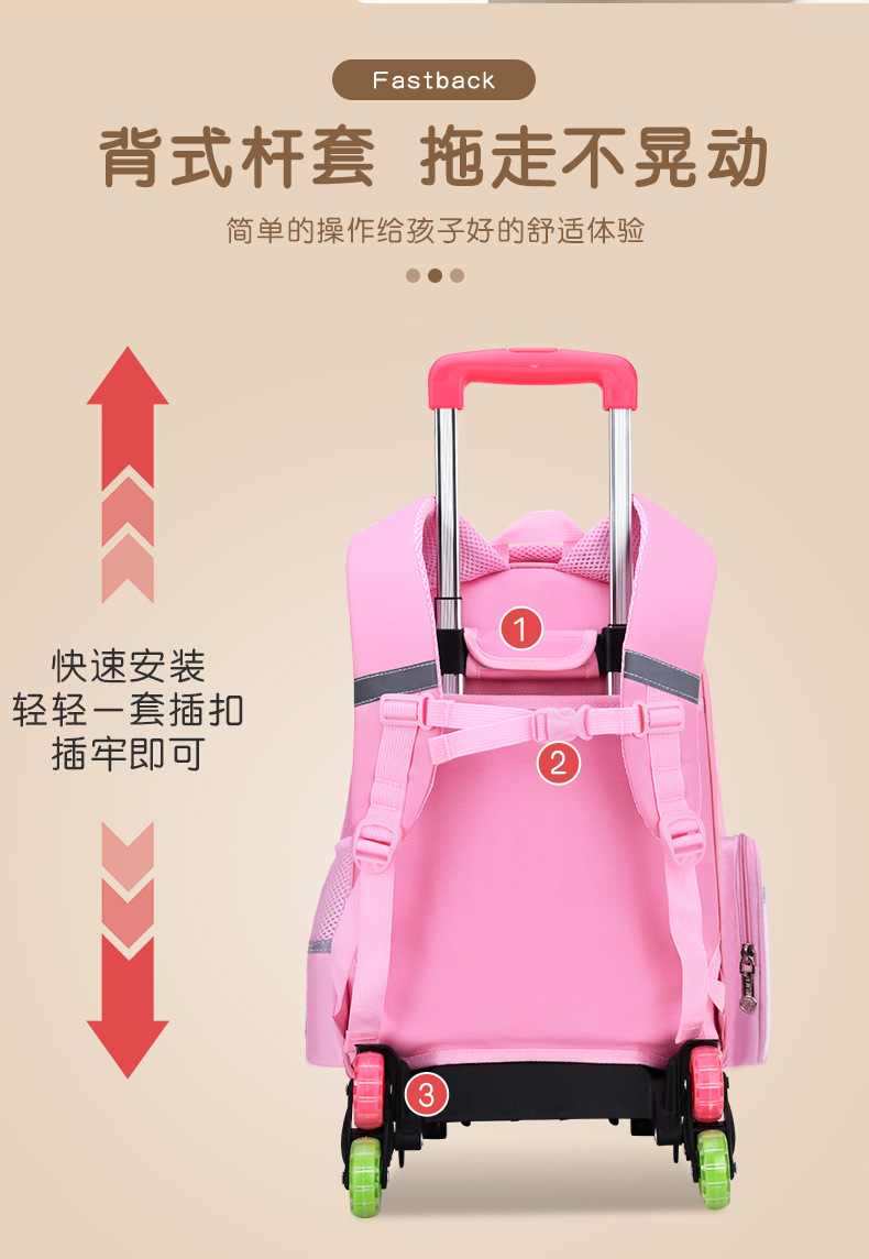 • 핑크색 책가방 + 키가 큰 6륜 당김 막대