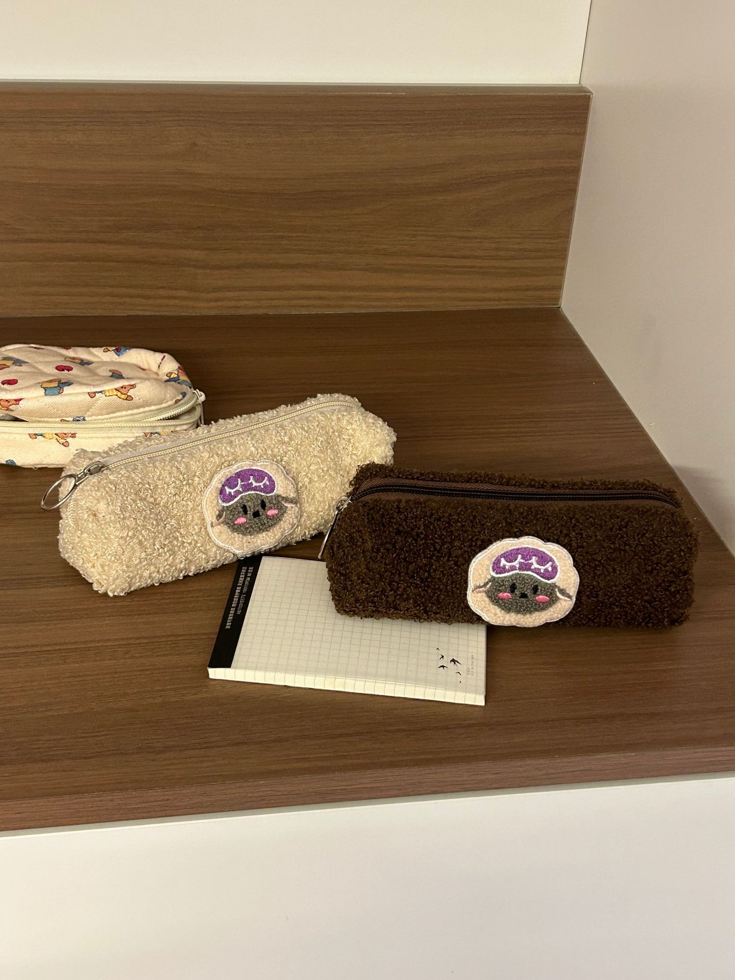 • 베이지 양고기 라벨 필통