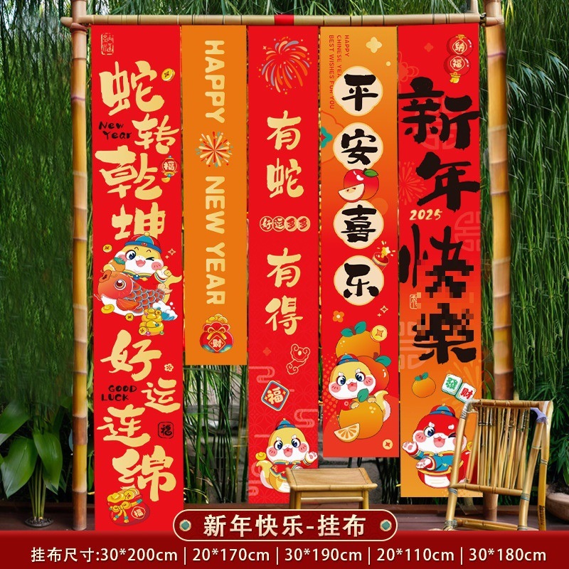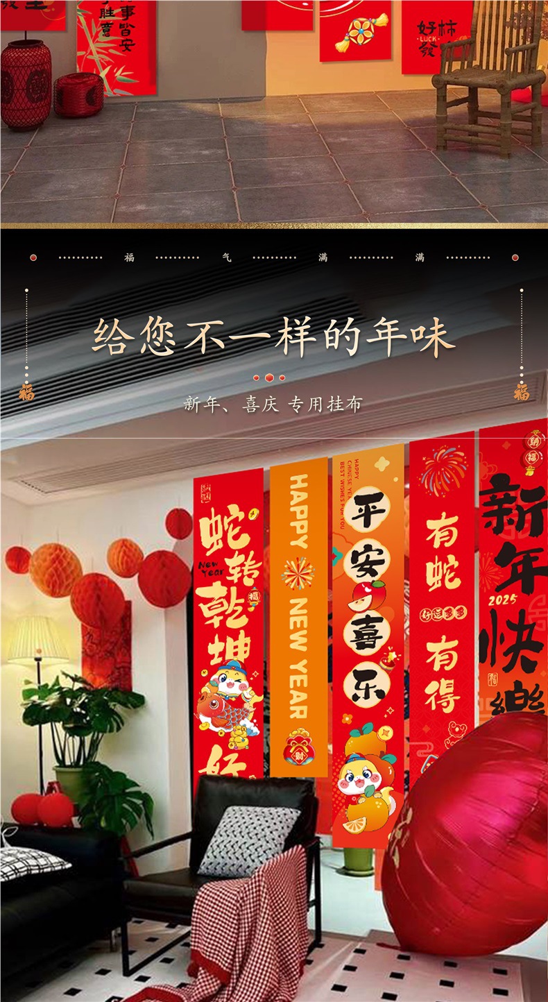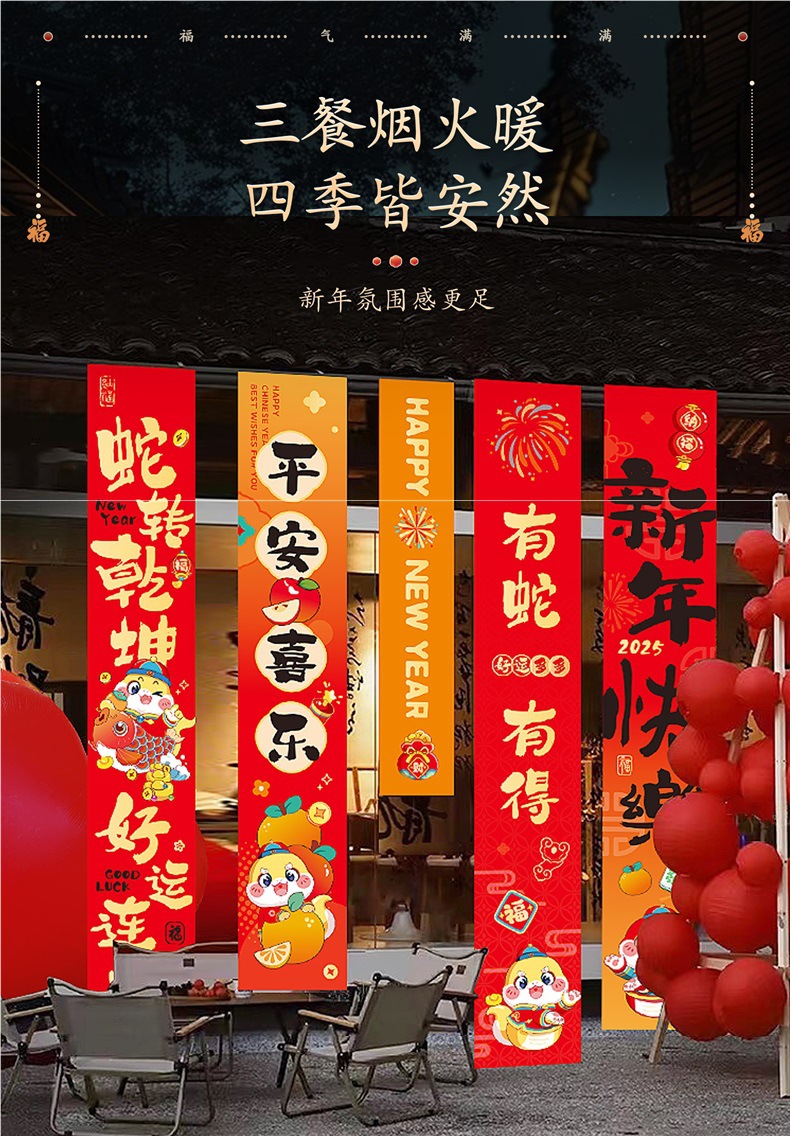 새해 옷감 2025 년 뱀 봄 축제 장식 새해 쇼핑몰 장면 레이아웃 분위기 배너 공장 우표스토어 가기