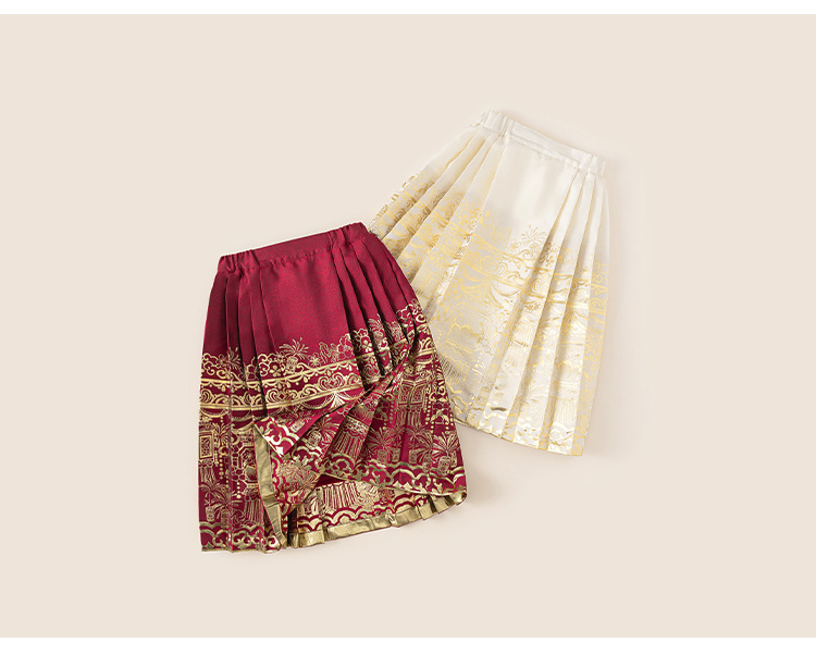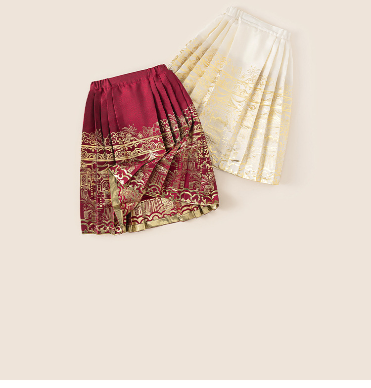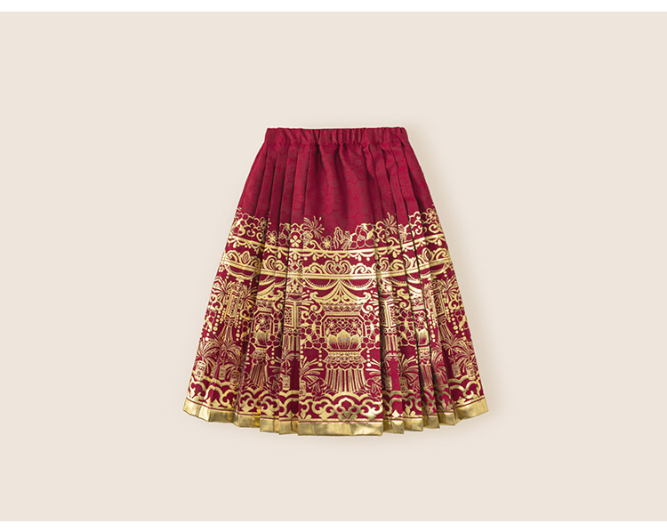 유바오 아동복 어린이 신형 중국식 경마 치마 겨울 궈펑 소녀의 주름 치마 고대 중국 옷 치마