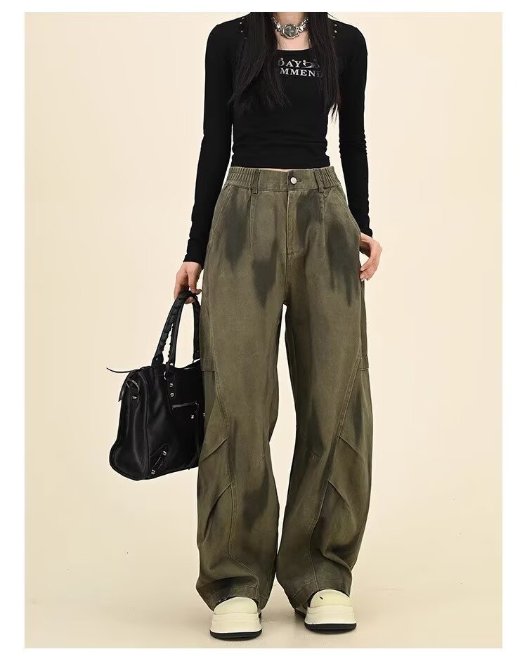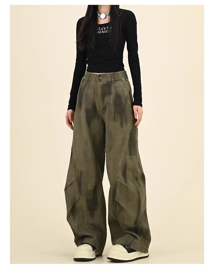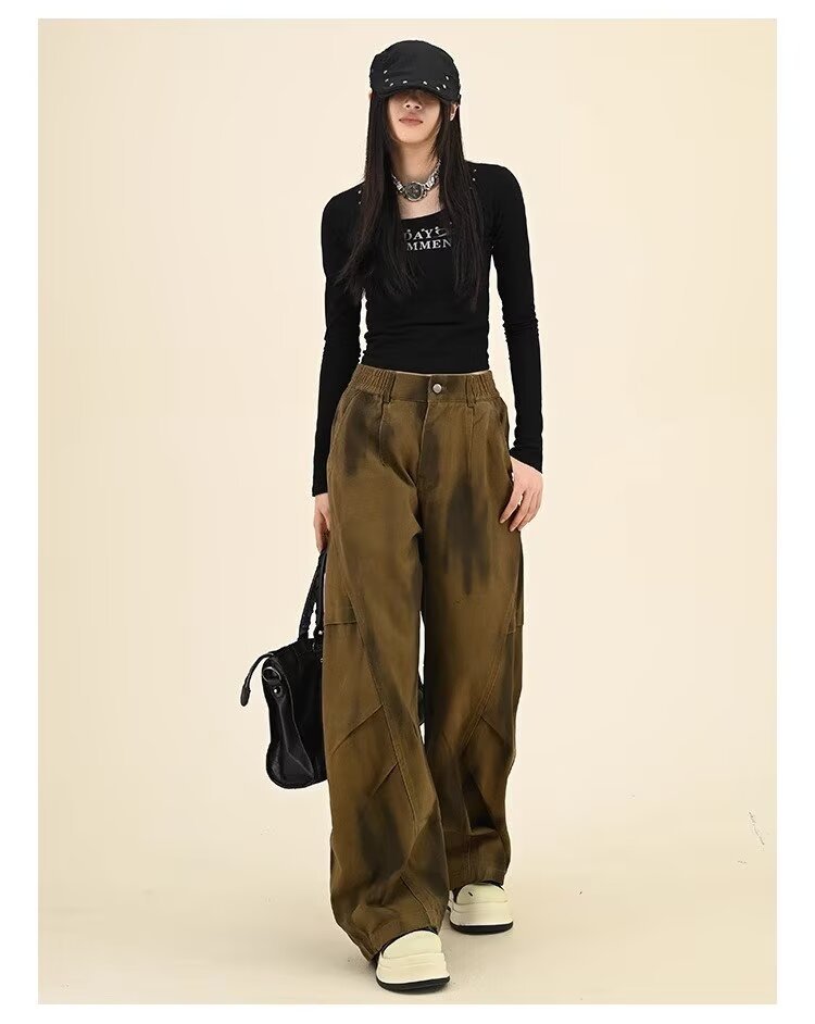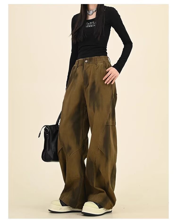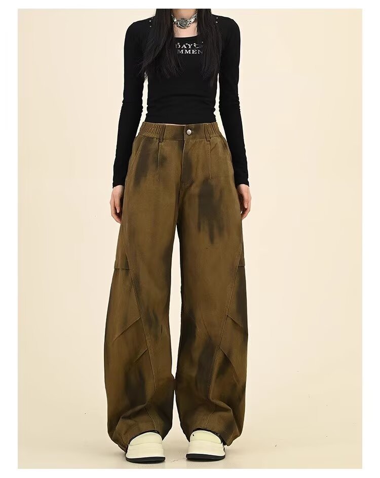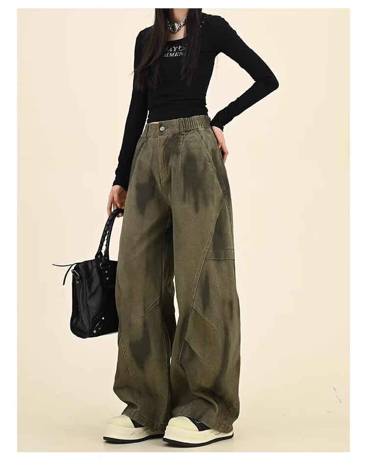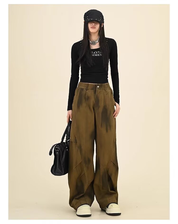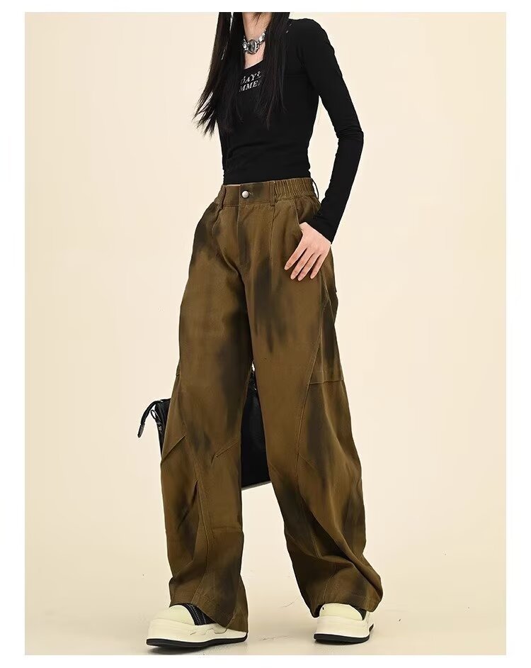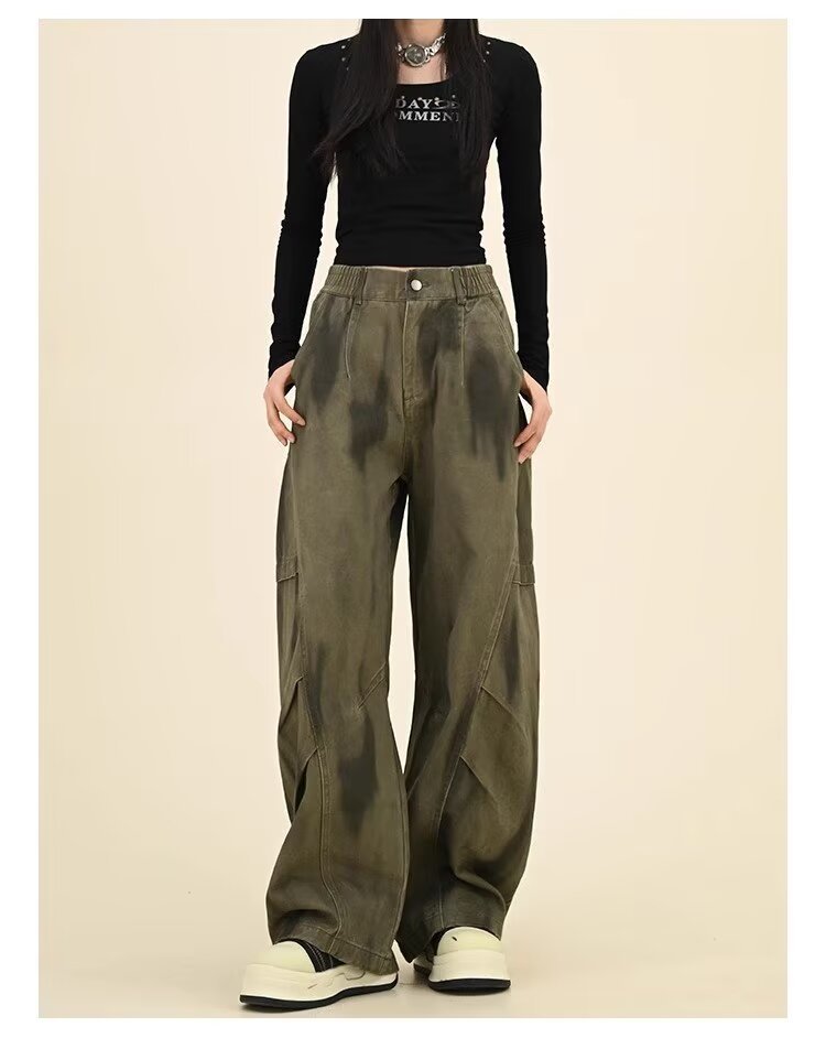 레트로 게으른 스타일 넓은 다리 데프 캐주얼 바지 남녀 인기있는 일본 트렌디 하라주쿠 니치 디자인화물 바지스토어 가기