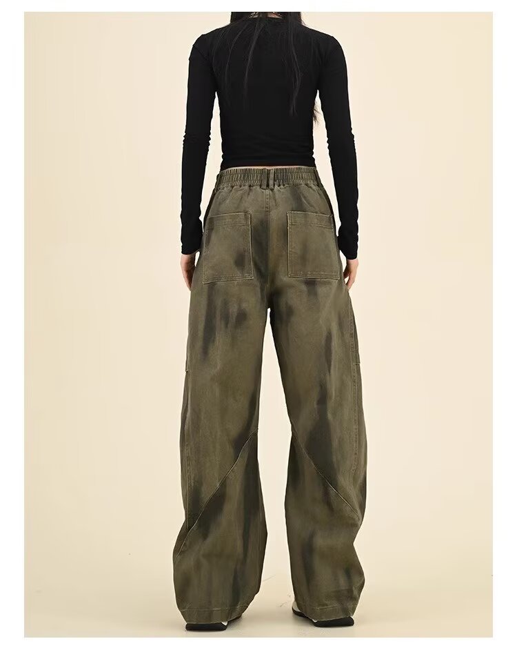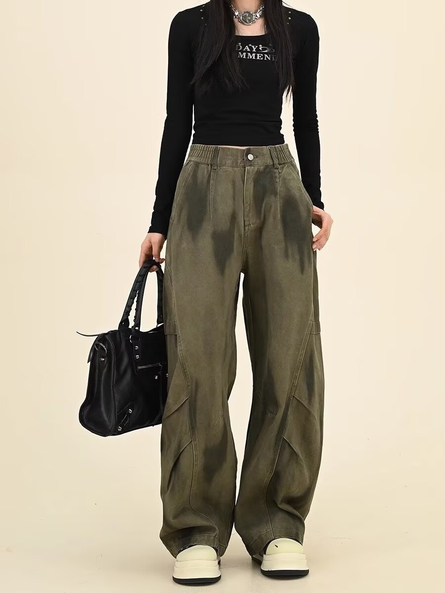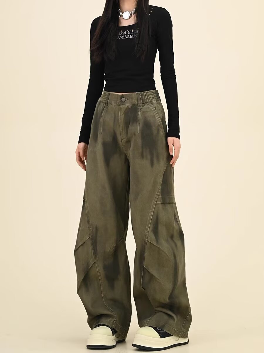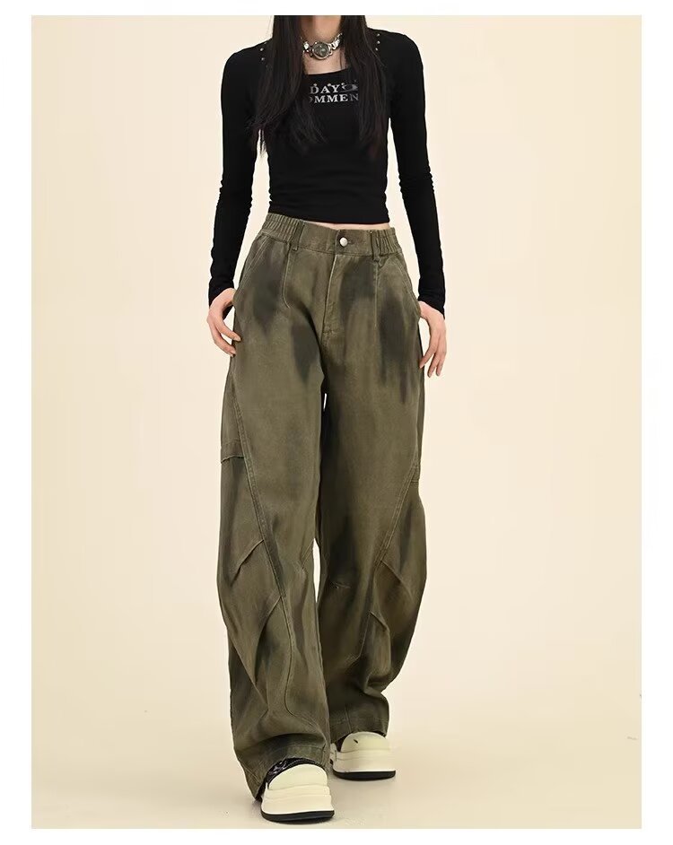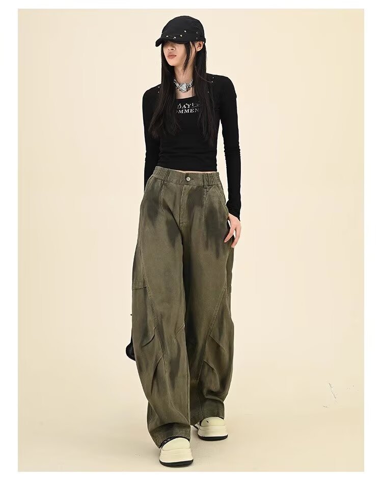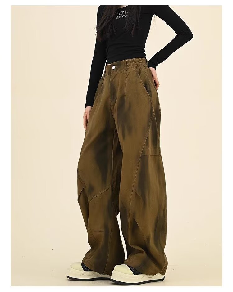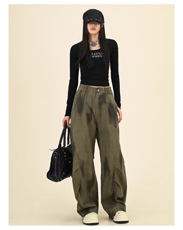 레트로 게으른 스타일 넓은 다리 데프 캐주얼 바지 남녀 인기있는 일본 트렌디 하라주쿠 니치 디자인화물 바지스토어 가기