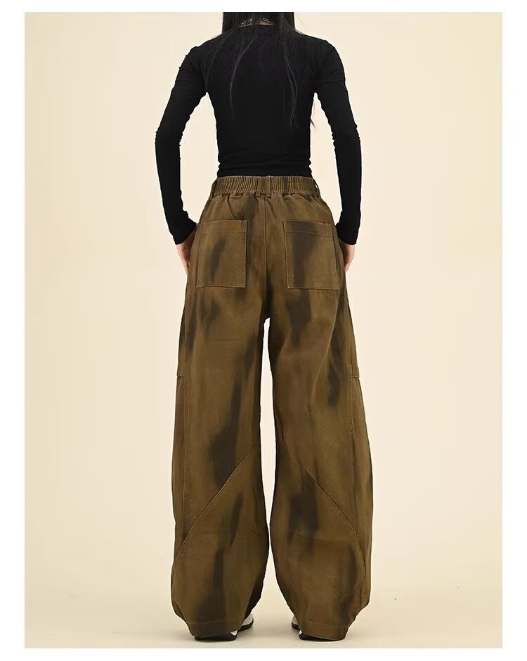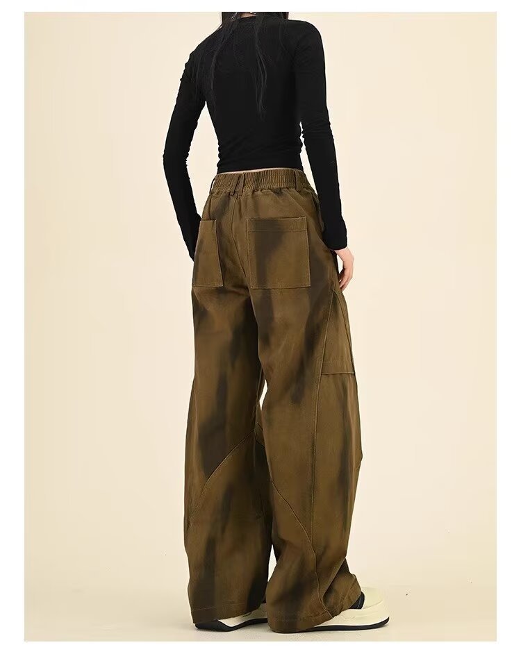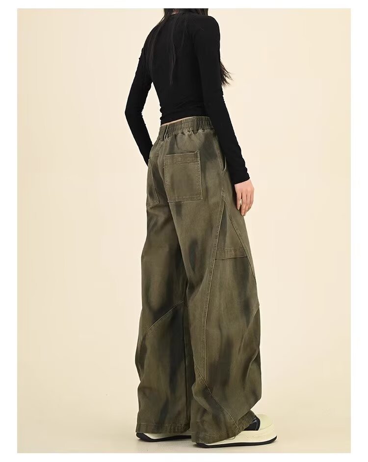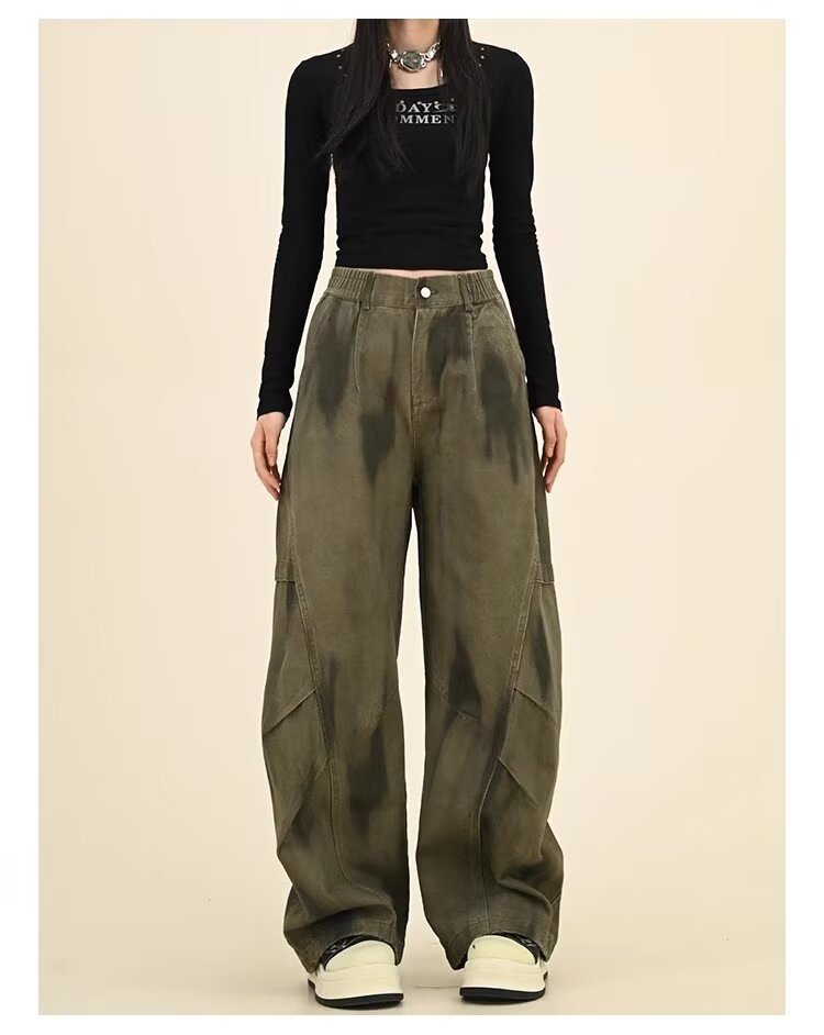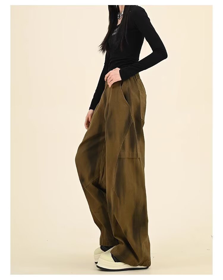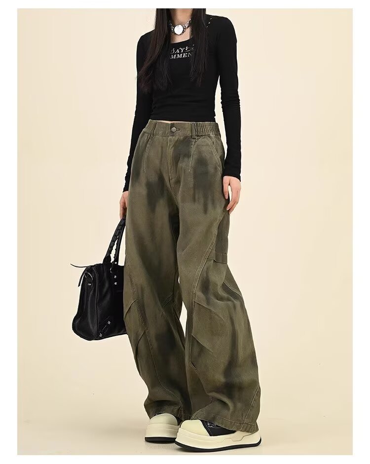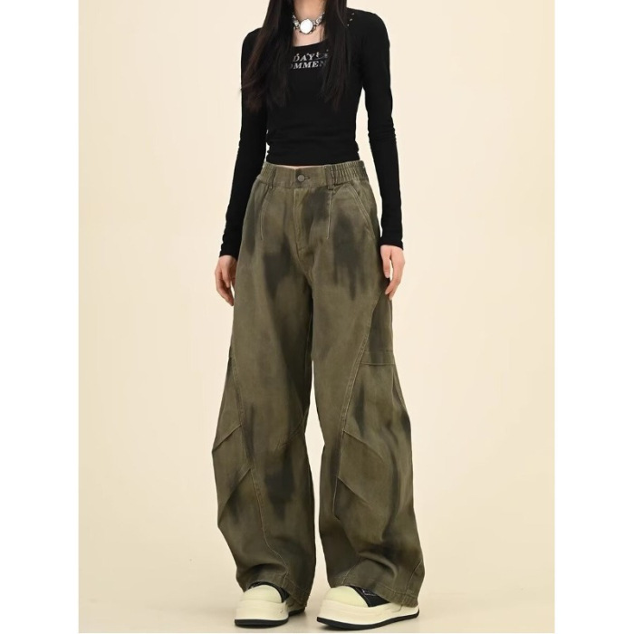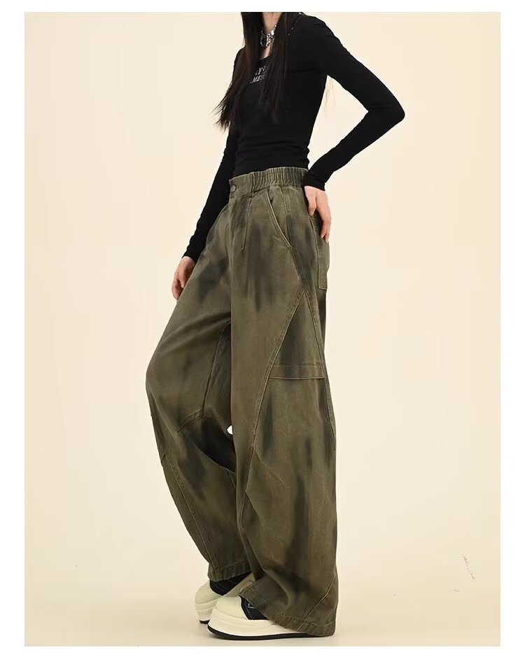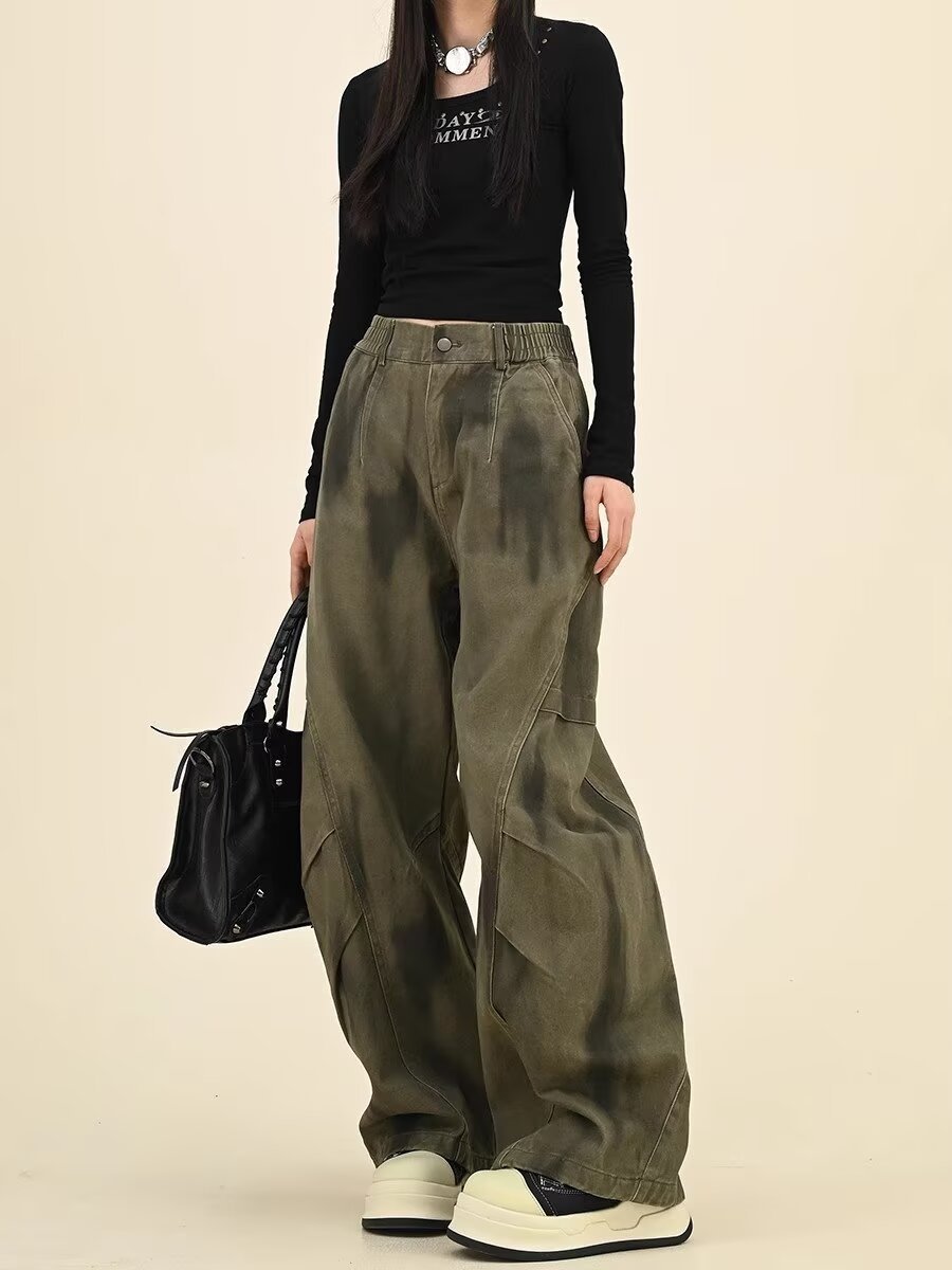 레트로 게으른 스타일 넓은 다리 데프 캐주얼 바지 남녀 인기있는 일본 트렌디 하라주쿠 니치 디자인화물 바지스토어 가기