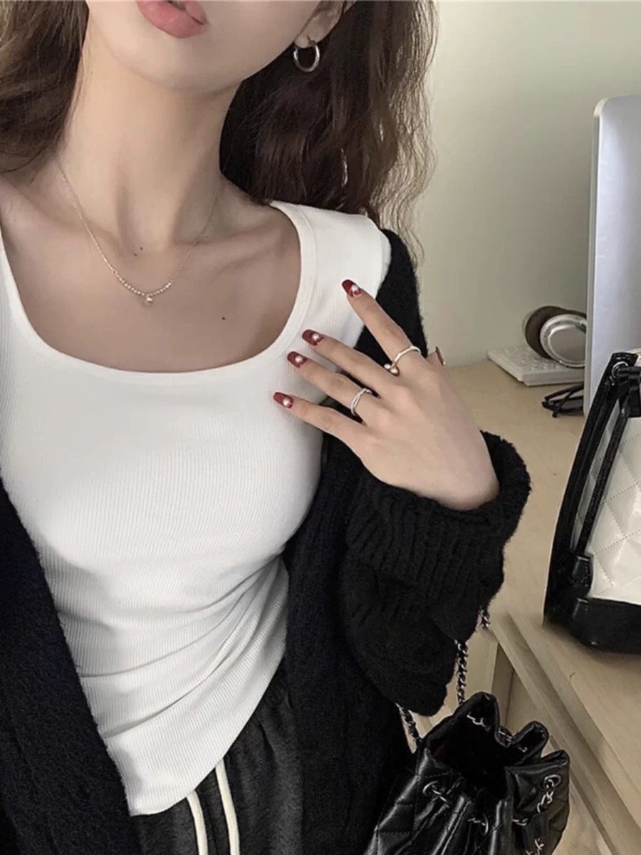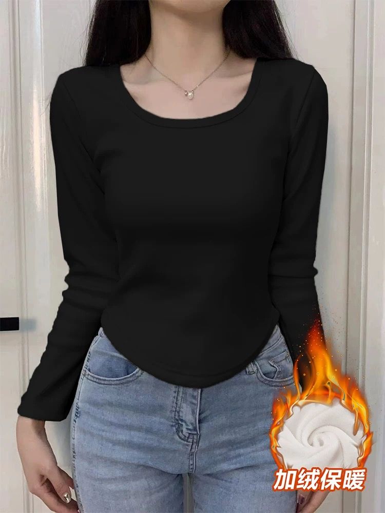 U-넥 바닥 셔츠 여성의 가을과 겨울 기모 두꺼운 벨벳 따뜻한 어깨 긴팔 티셔츠 슬림 핏 쇼트탑