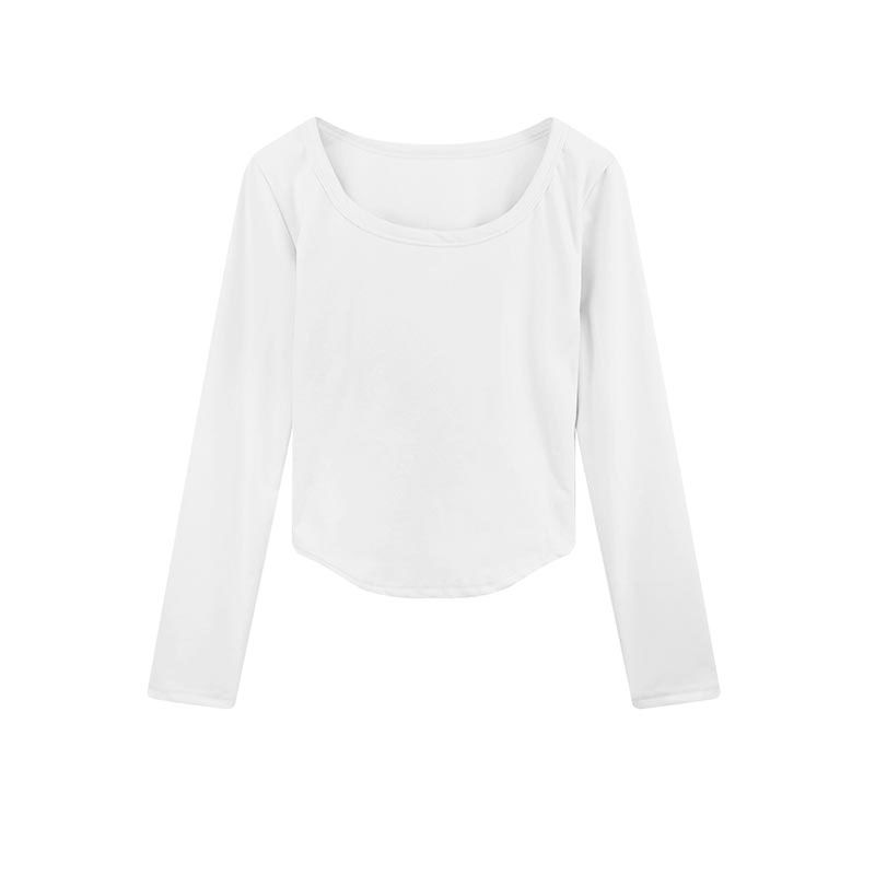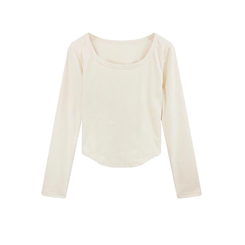 U-넥 바닥 셔츠 여성의 가을과 겨울 기모 두꺼운 벨벳 따뜻한 어깨 긴팔 티셔츠 슬림 핏 쇼트탑스토어 가기