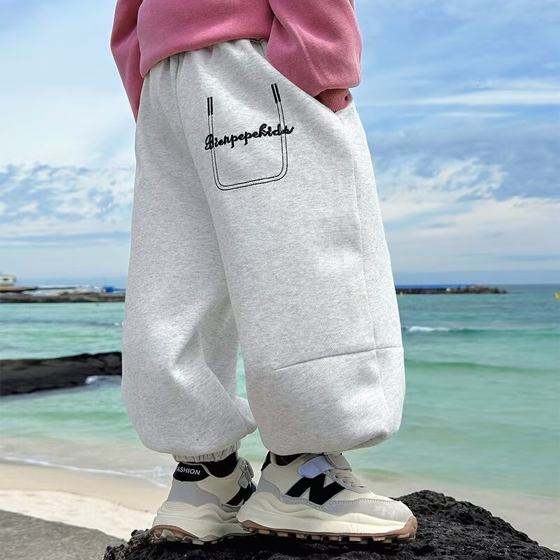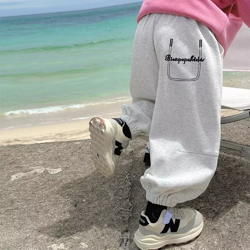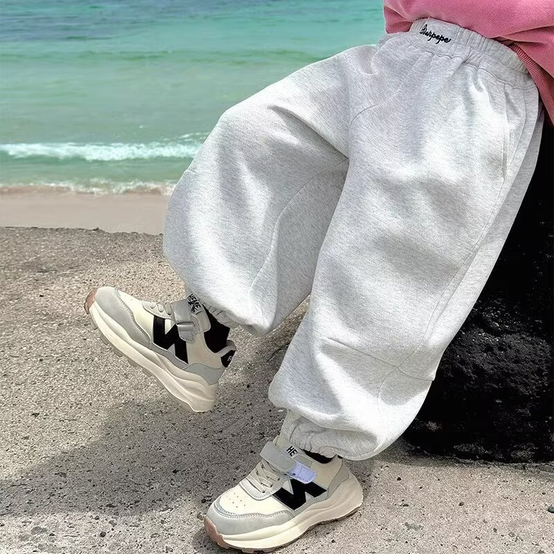 소년 바지 가을 2024 새로운 어린이 봄과 가을 회색 운동복 소년 가을 바지 느슨한 스포츠 바지