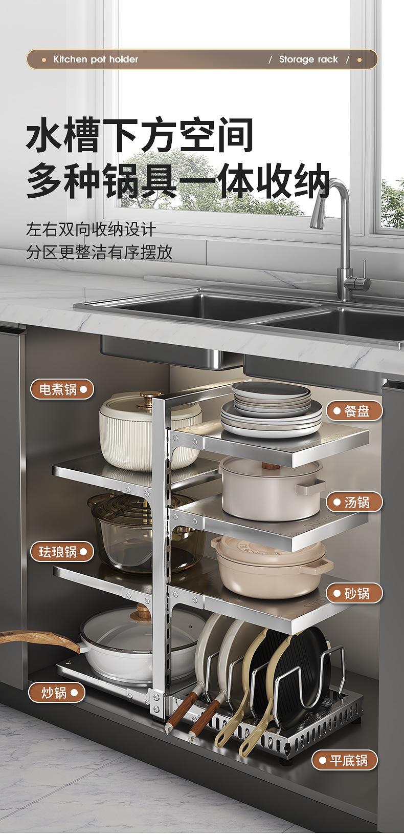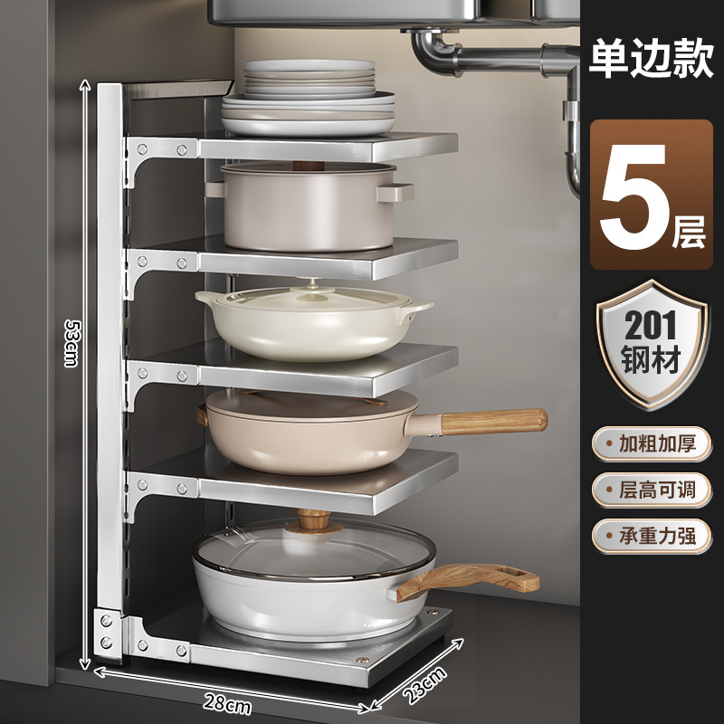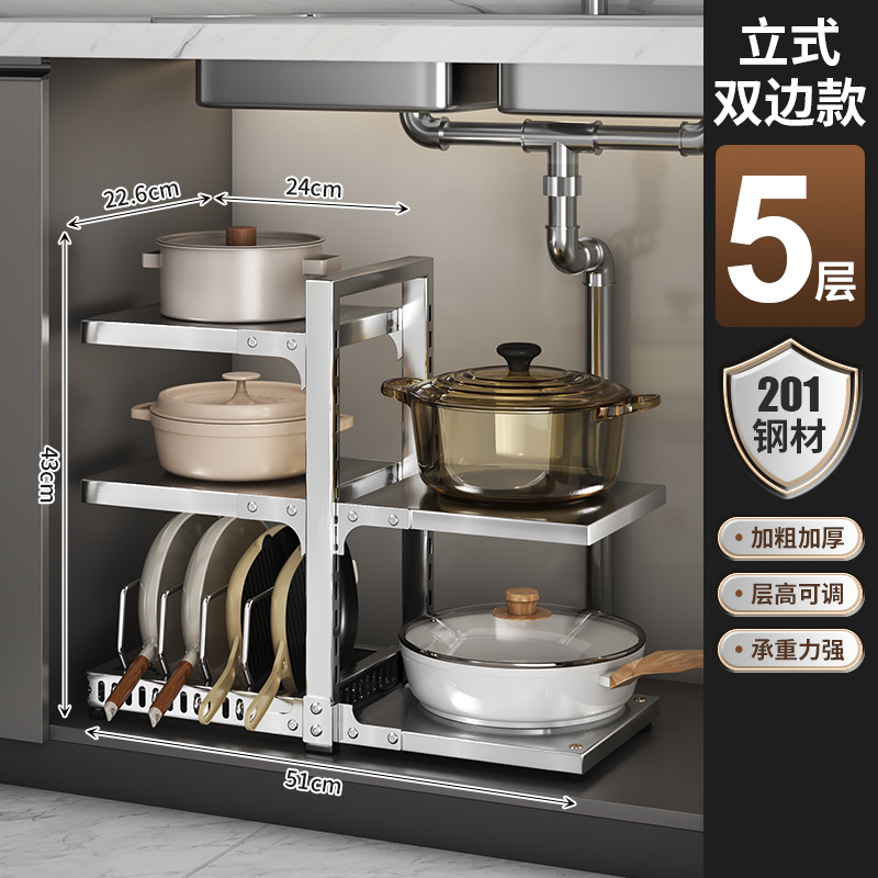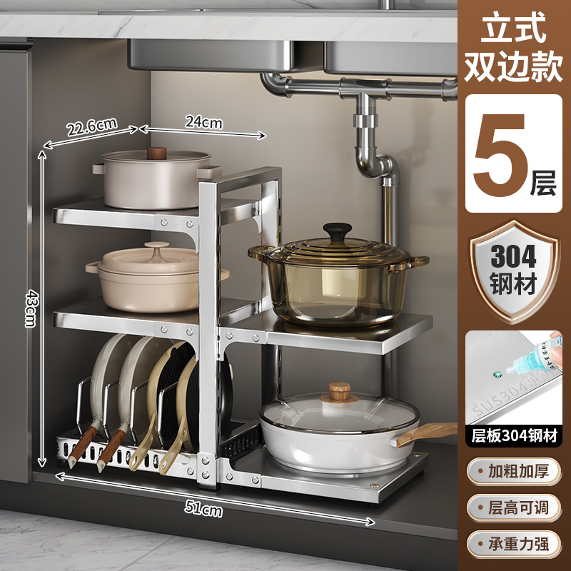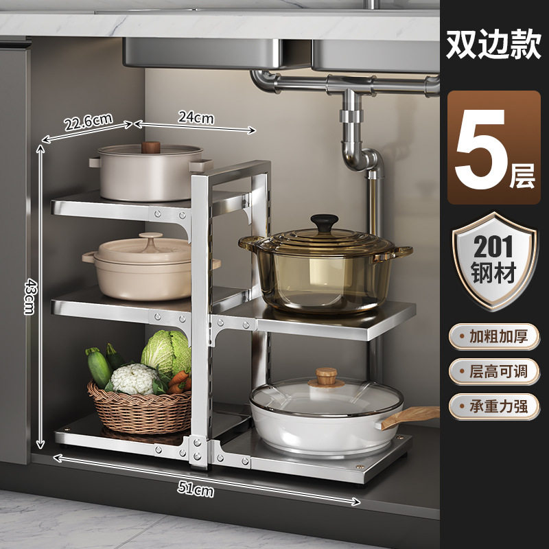 스테인레스 스틸 주방 랙 싱크 캐비닛 멀티 레이어 저장 랙 가정용 다기능 레이어 냄비 랙