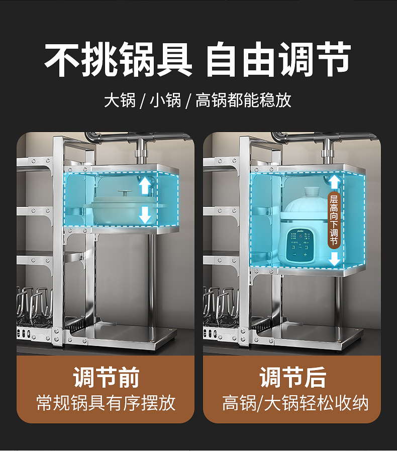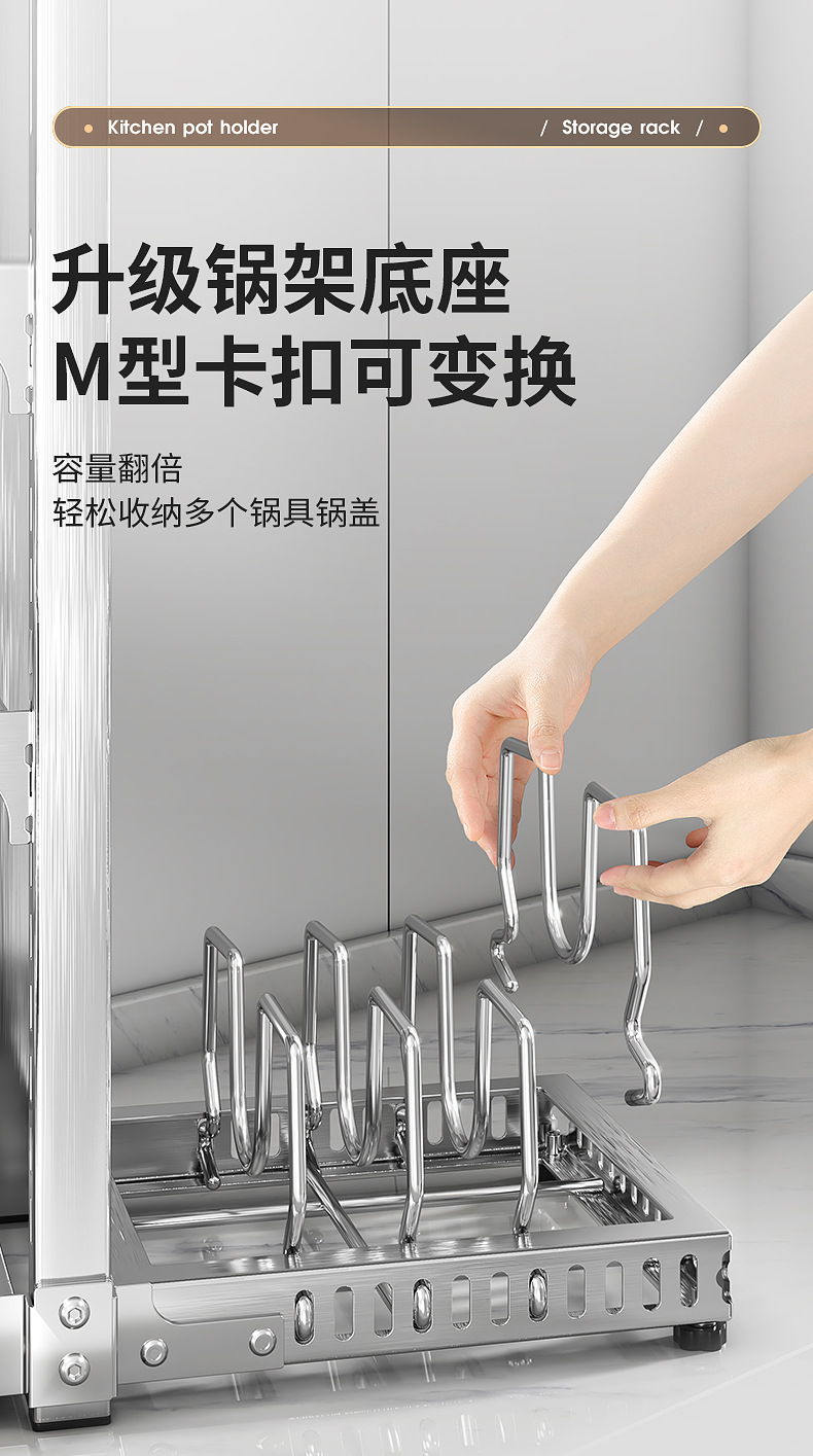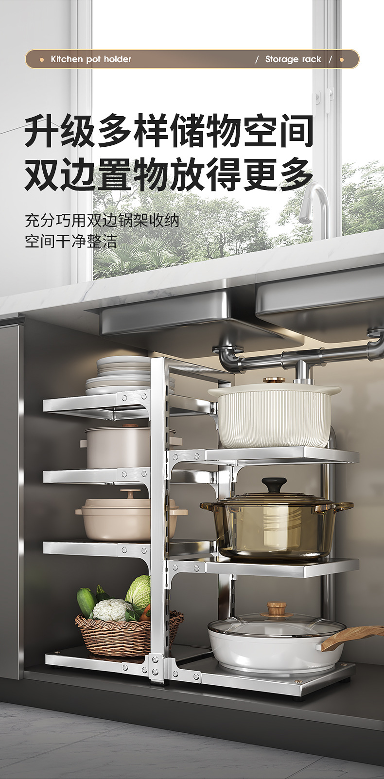 스테인레스 스틸 주방 랙 싱크 캐비닛 멀티 레이어 저장 랙 가정용 다기능 레이어 냄비 랙