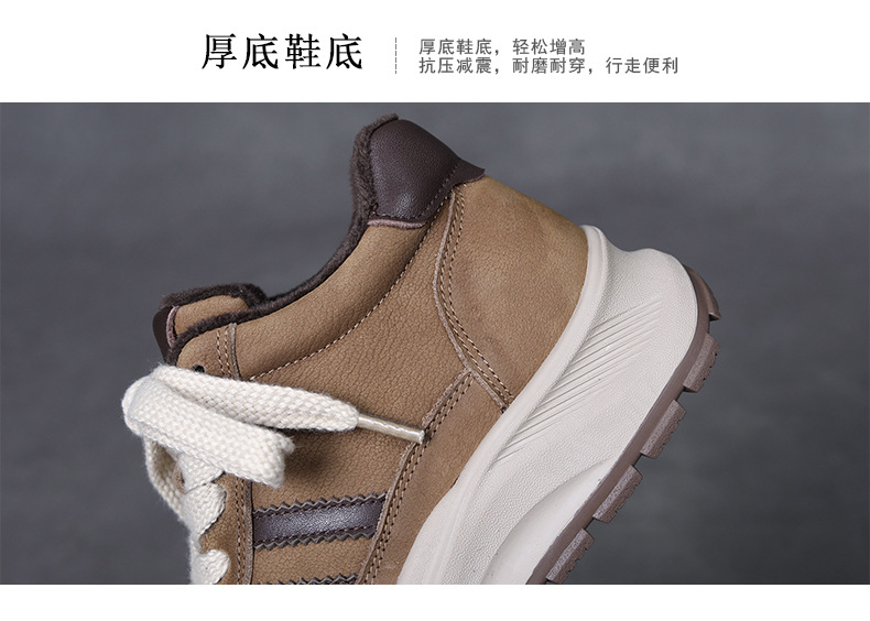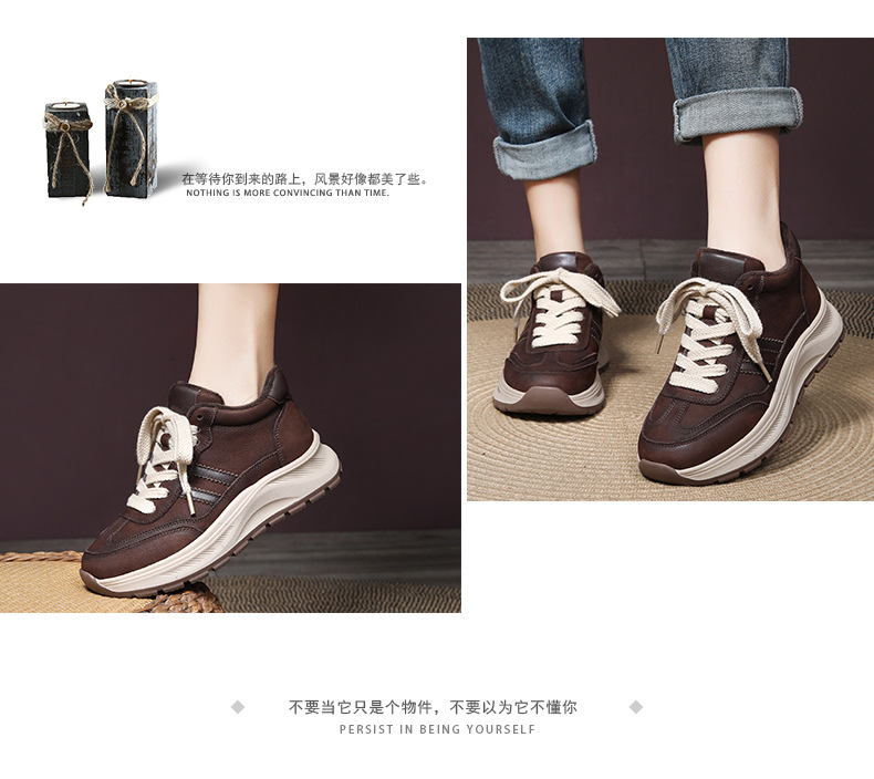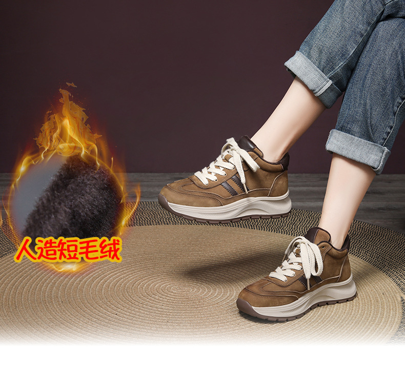 레트로 캐주얼 신발 여성 2024 년 겨울 새로운 도착 헤드 레이어 Cowhide Frosted 가죽 웨지 라운드 토 스포츠 기모 여성 신발