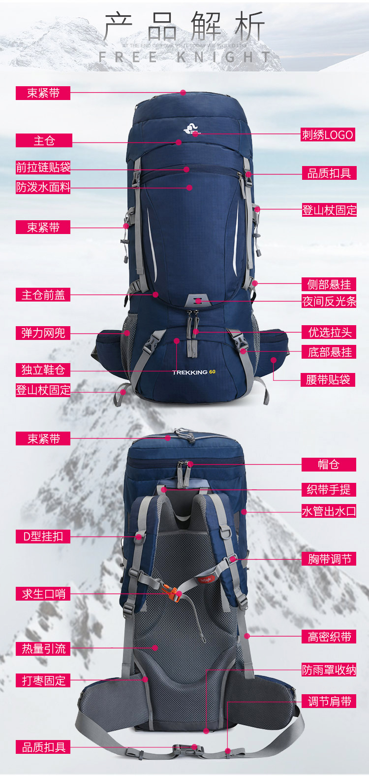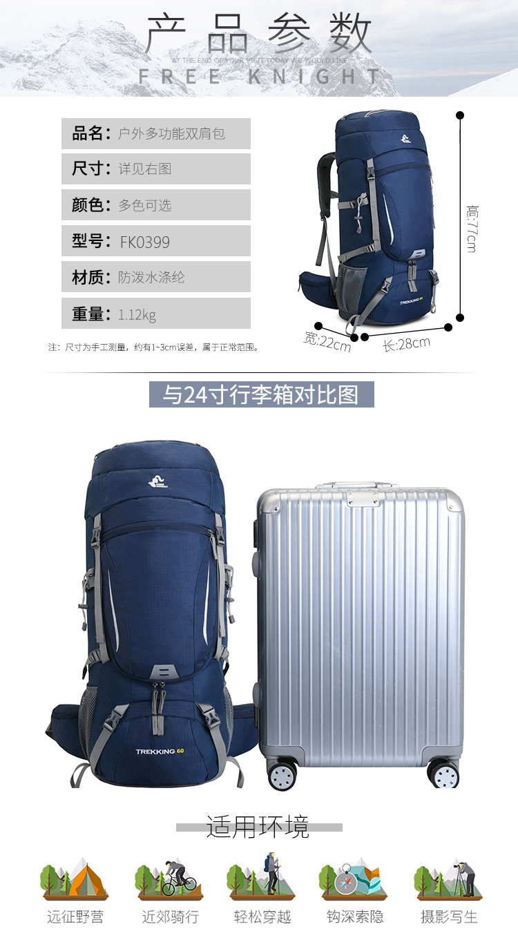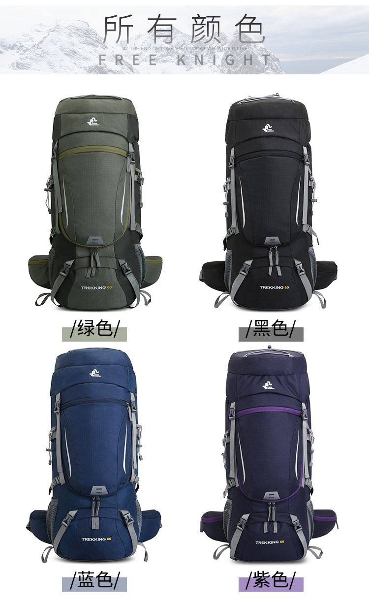 무료 KNIGHT 국경 새로운 60L 등산 가방 방수 직물 하이킹 백백 접이식 비 커버