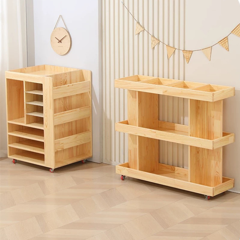유치원 솔리드 우드 이동식 아트 데스크 어린이 그림 아이템 저장 랙 아트 종이 보관 캐비닛스토어 가기