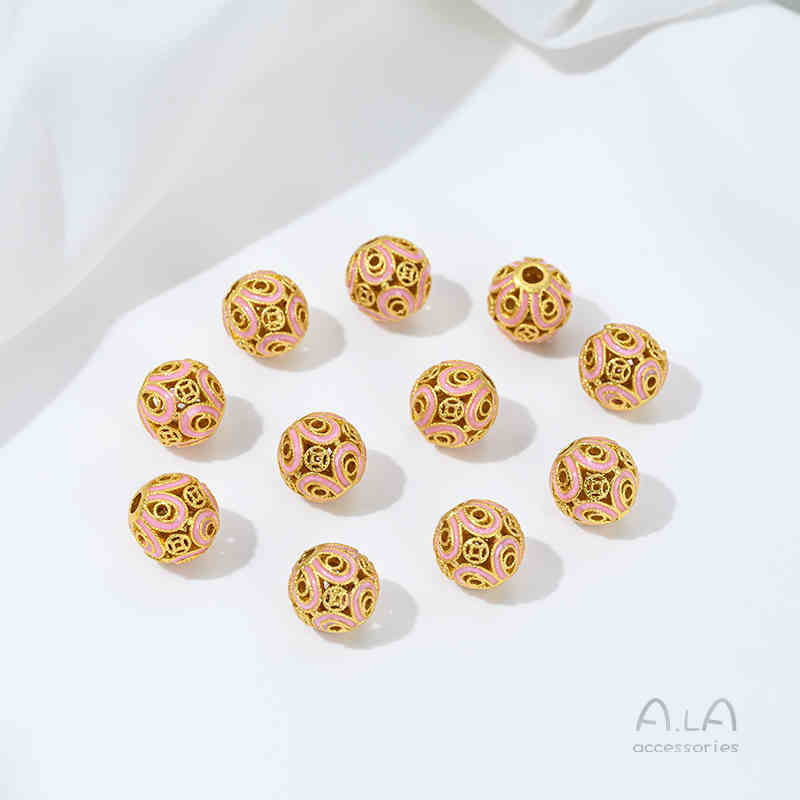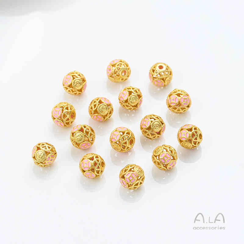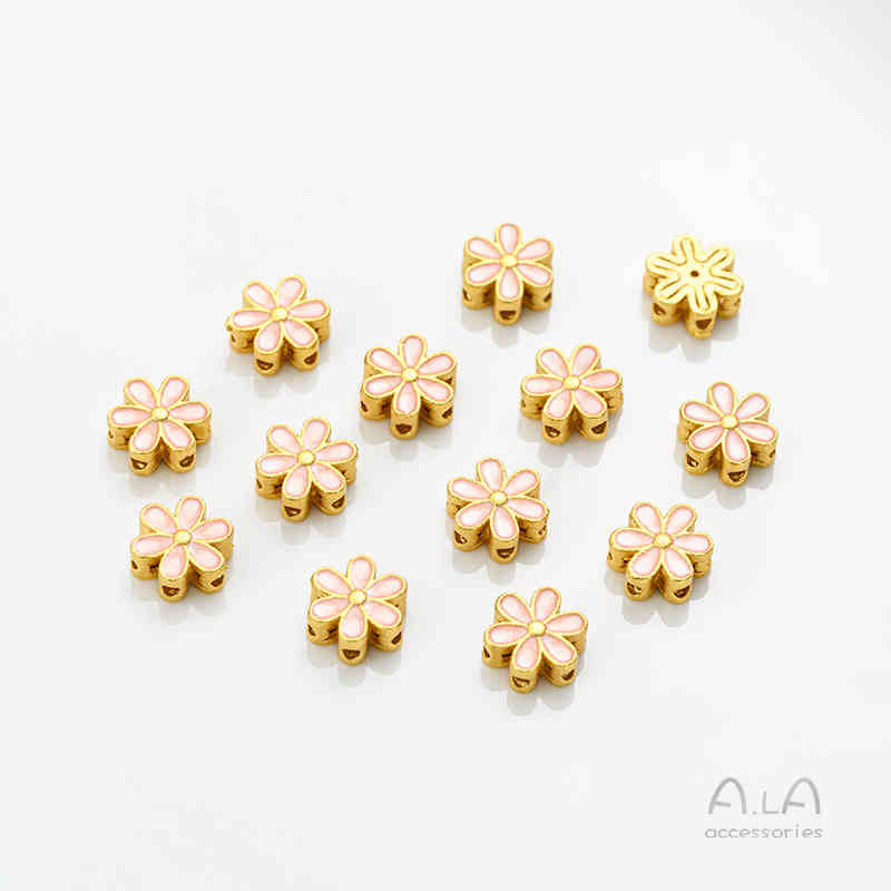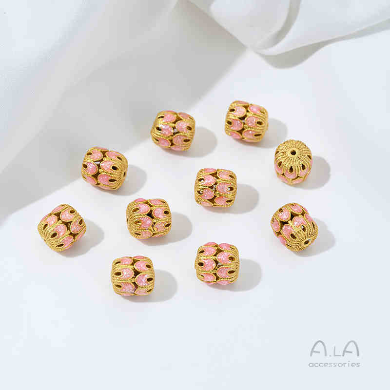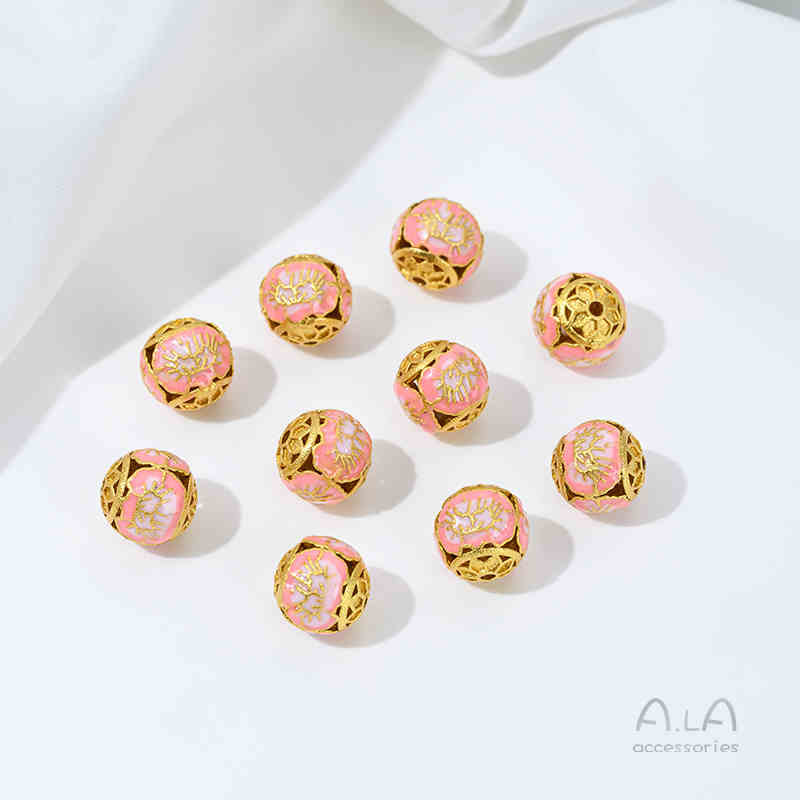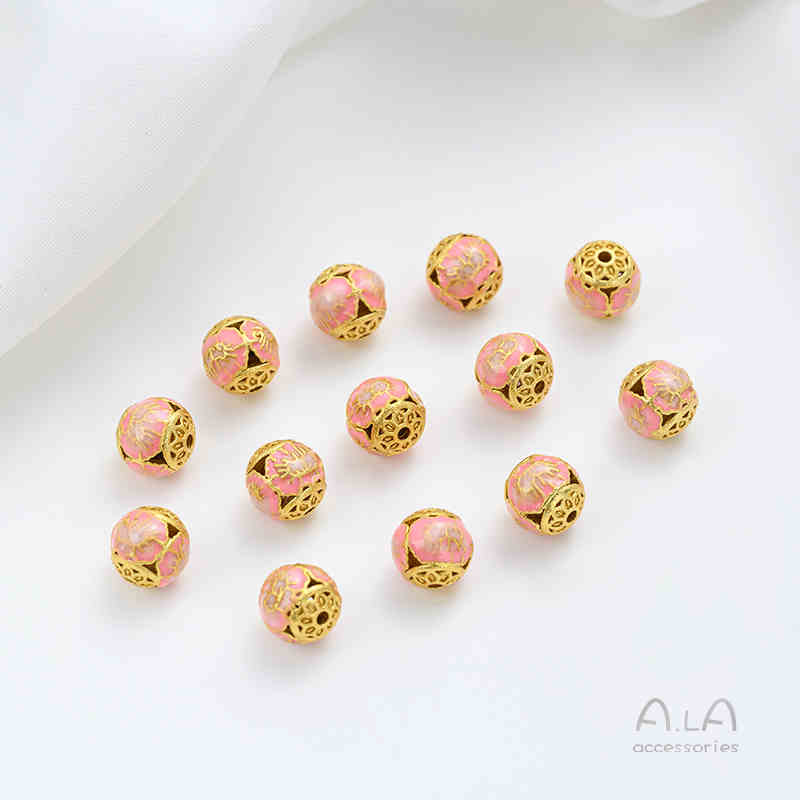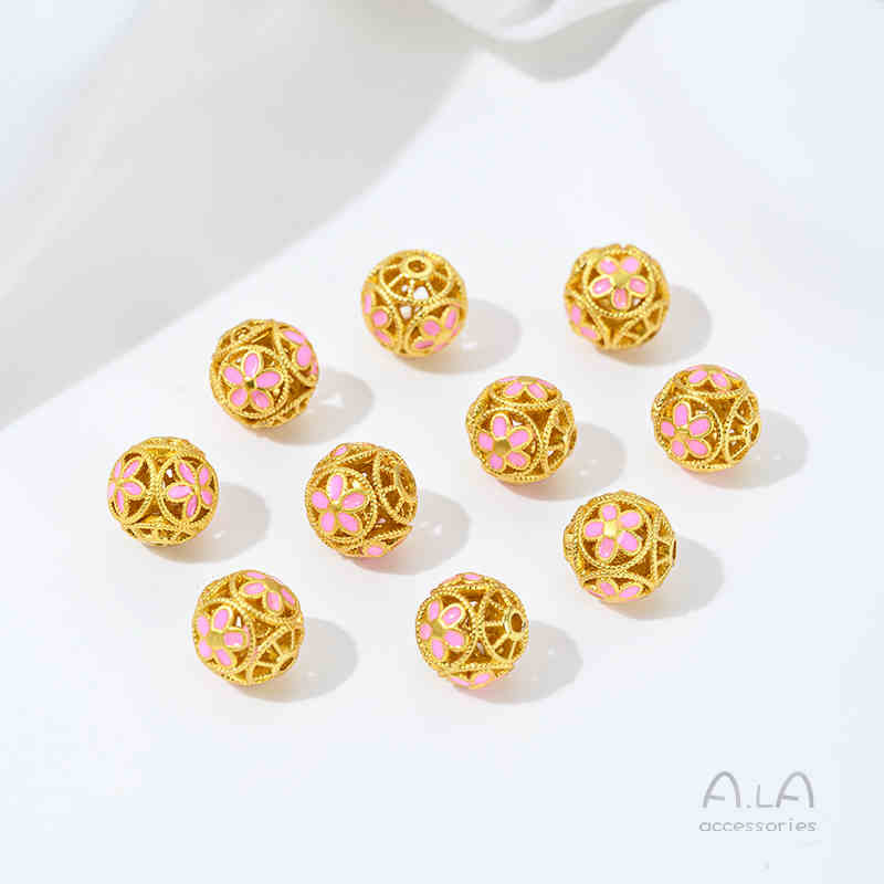색상 유지 모래 골드 드롭 오일 클로이 손 핑크 복숭아 꽃 빈 공 구리 돈 연꽃 나비 구슬 diy 액세서리스토어 가기