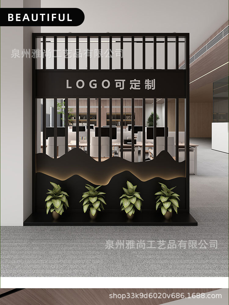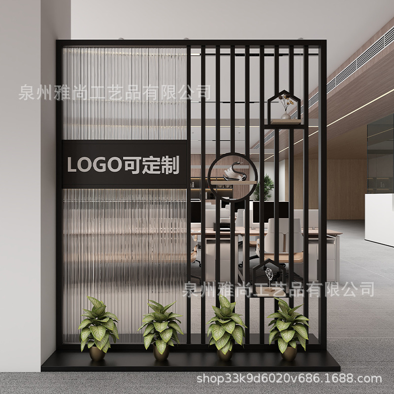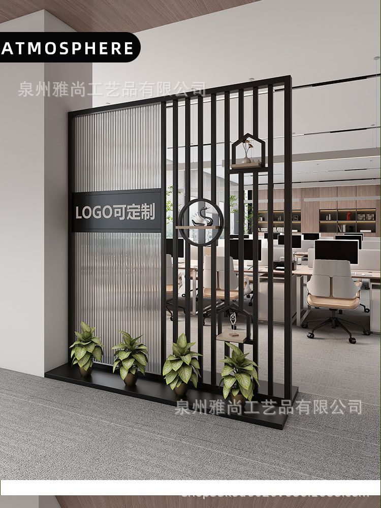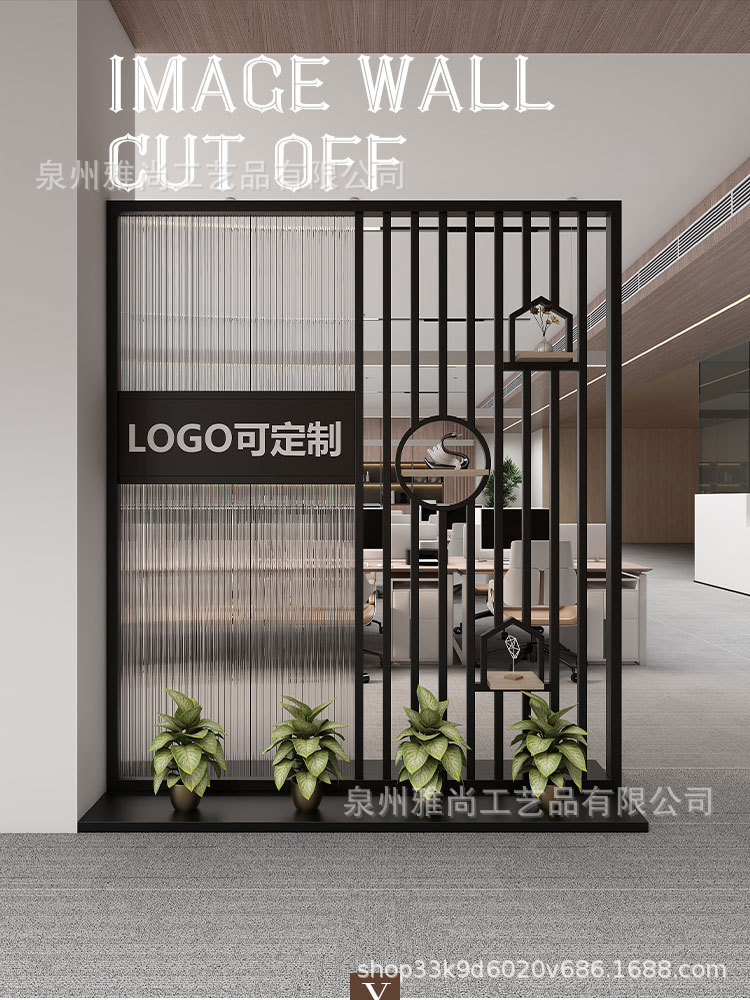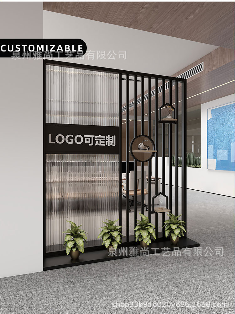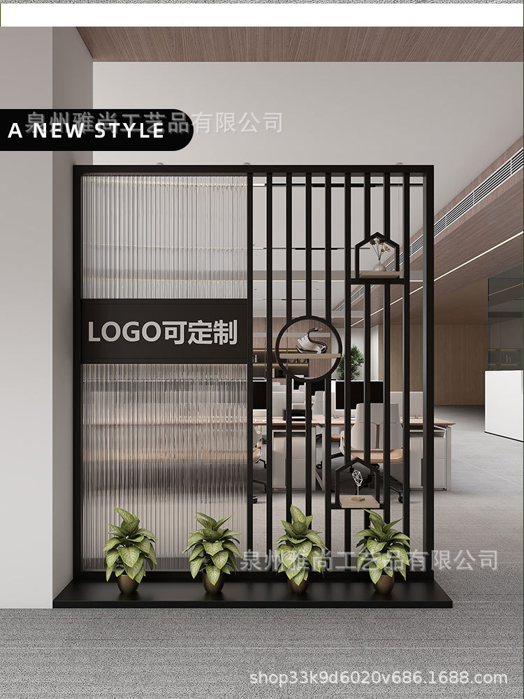 새로운 중국 스타일 사무실 입구 현대 창홍 유리 화면 이미지 벽 파티션 홈 입구 배경 벽스토어 가기
