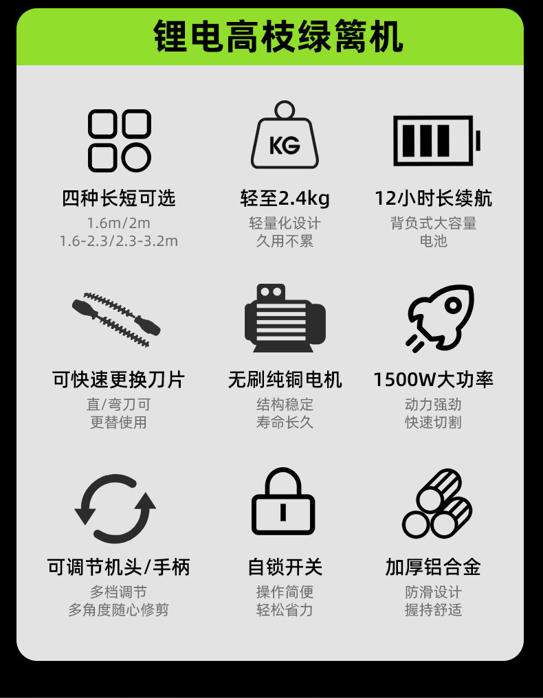 • 브러시리스 2M 연장 로드(리튬 배터리 12개)