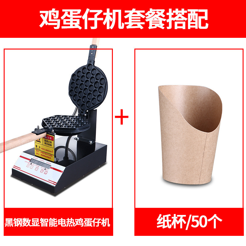 • 업그레이드된 블랙 스틸 디지털 디스플레이 지능형 전기 가열 계란 와플 기계 + 종이컵/50개