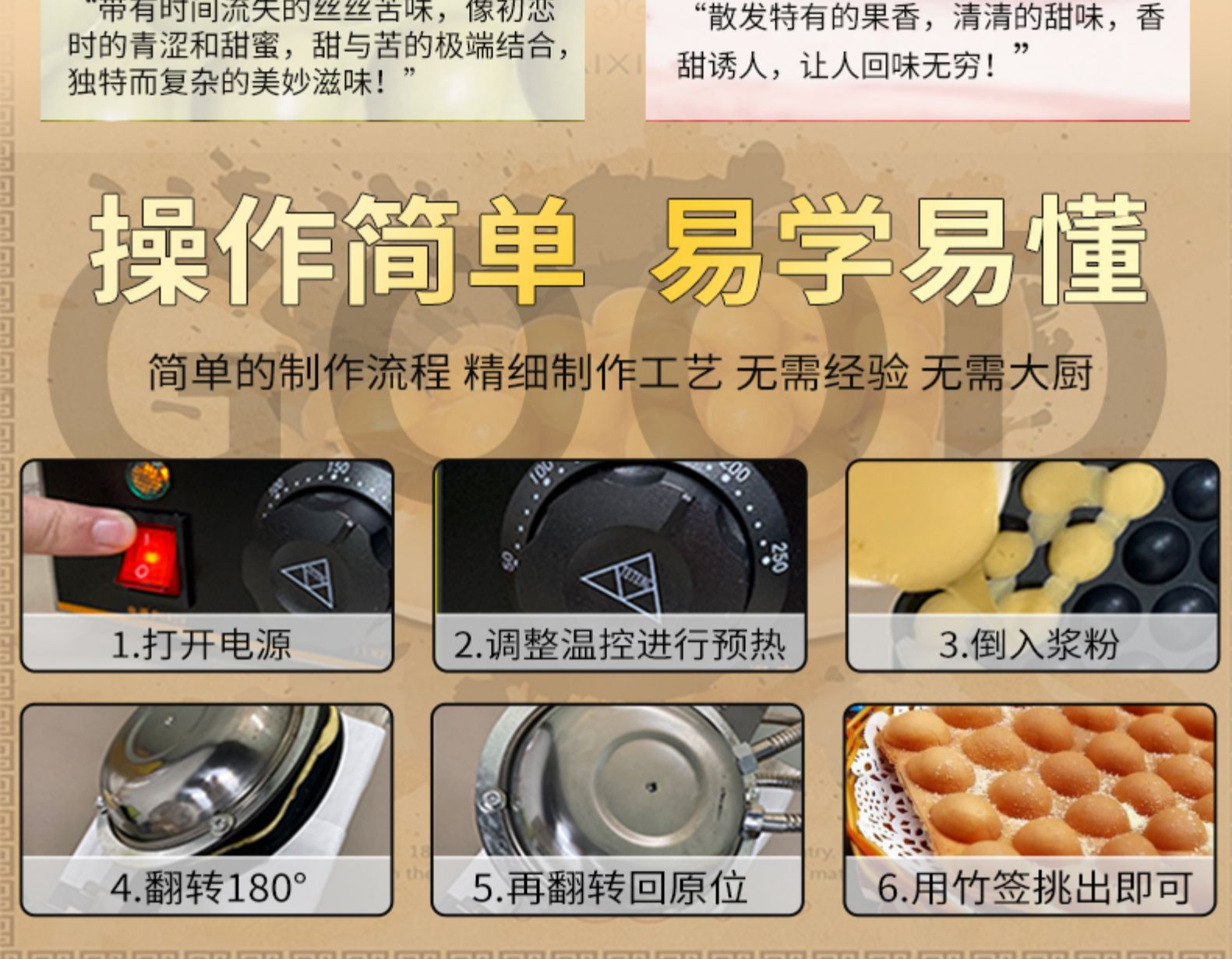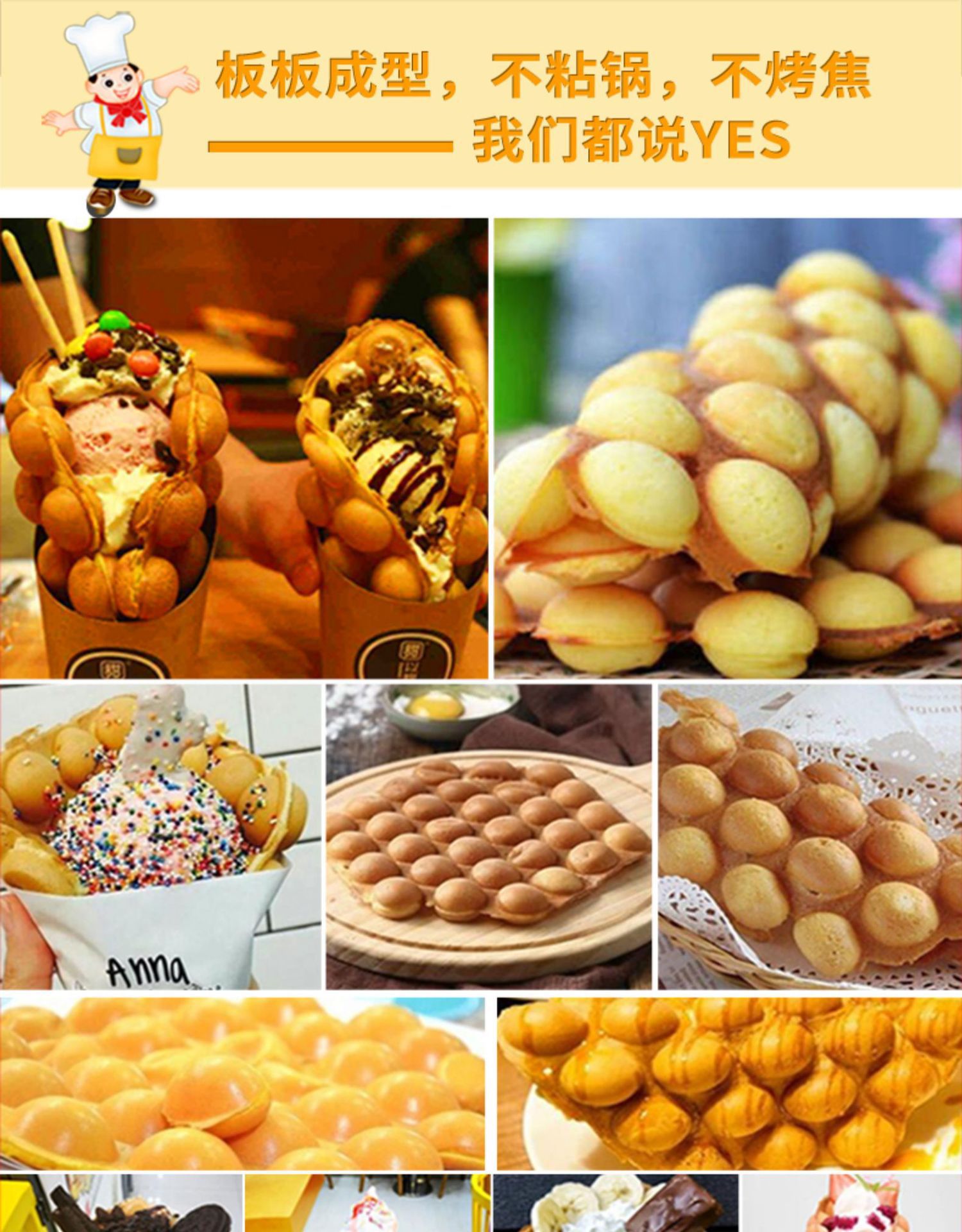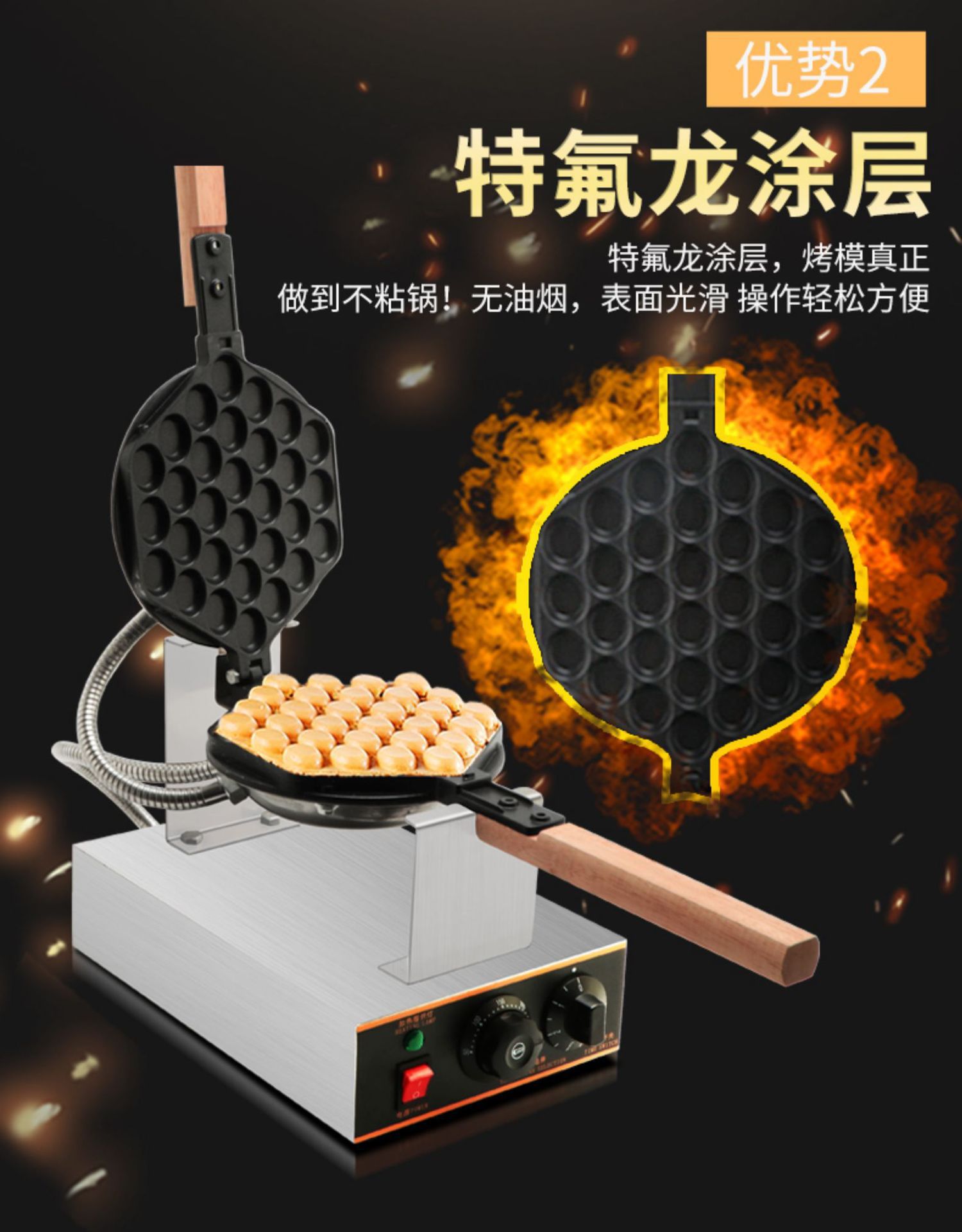 • 클래식 전기 계란 와플 기계 ⊙ 두꺼운 테프론◆계란 와플 파우더 보내기
