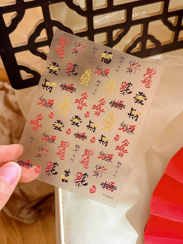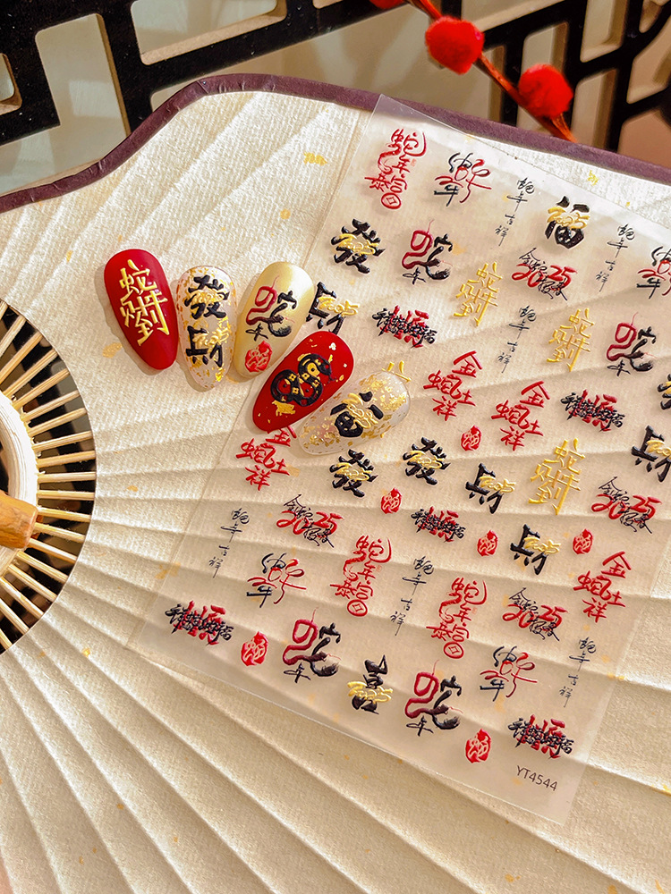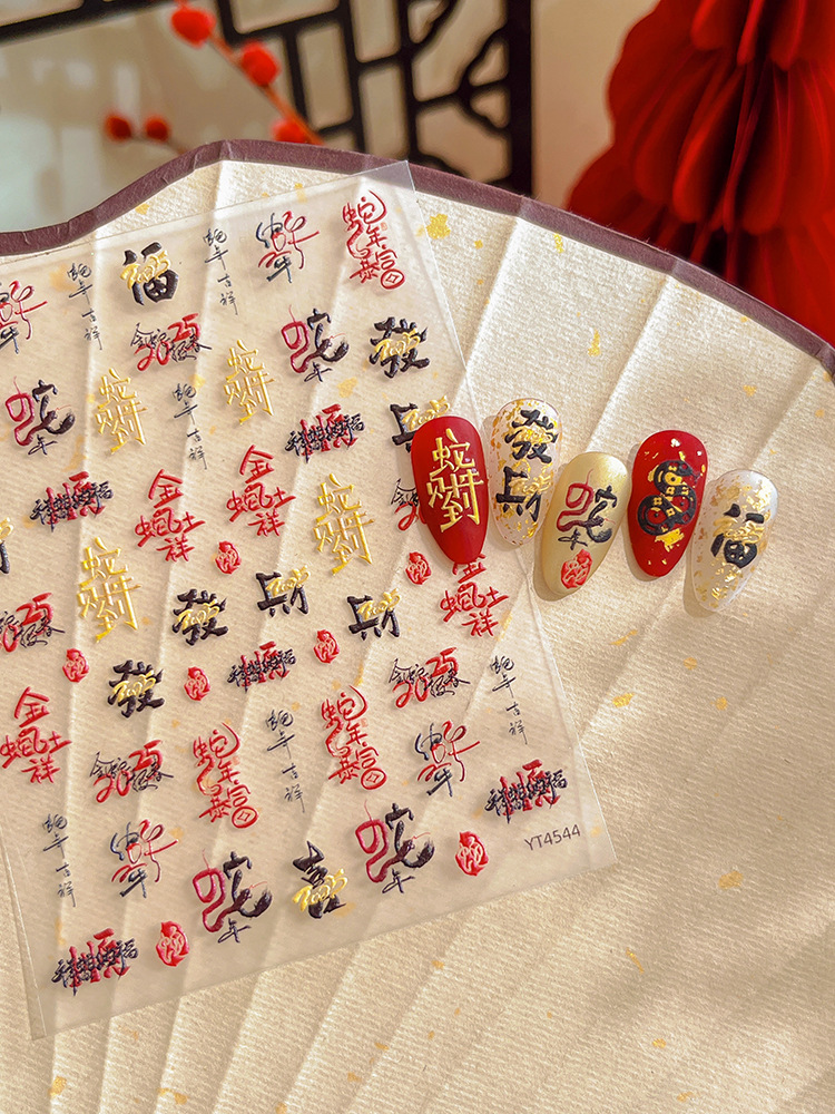 YITU 개미 그림 새해 구호 뱀 풍부한 네일 아트 스티커 접착제 네일 장식 스티커 YT4544