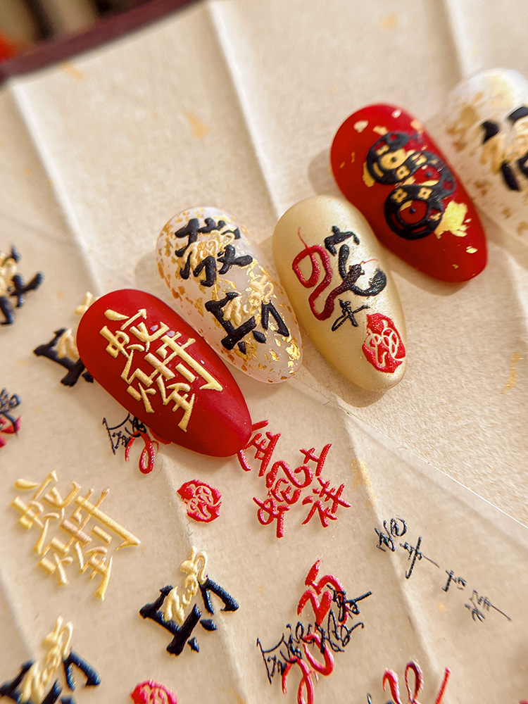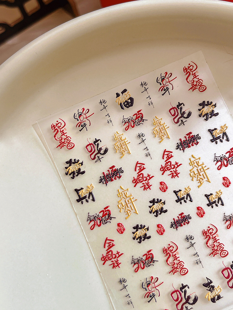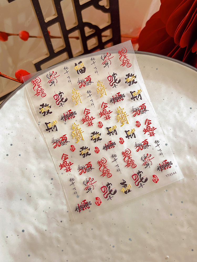 YITU 개미 그림 새해 구호 뱀 풍부한 네일 아트 스티커 접착제 네일 장식 스티커 YT4544스토어 가기