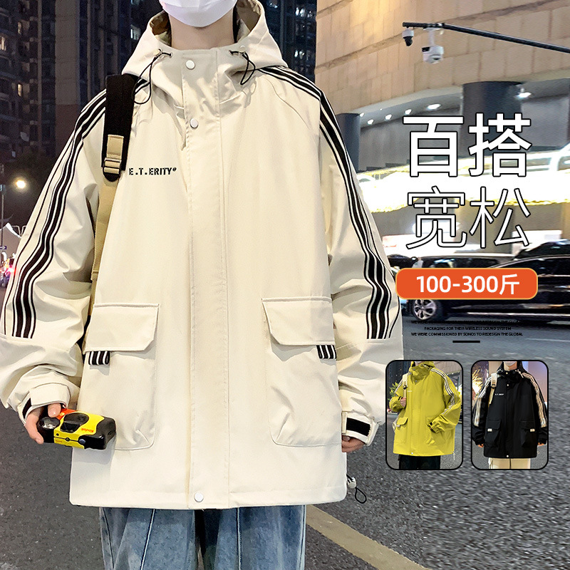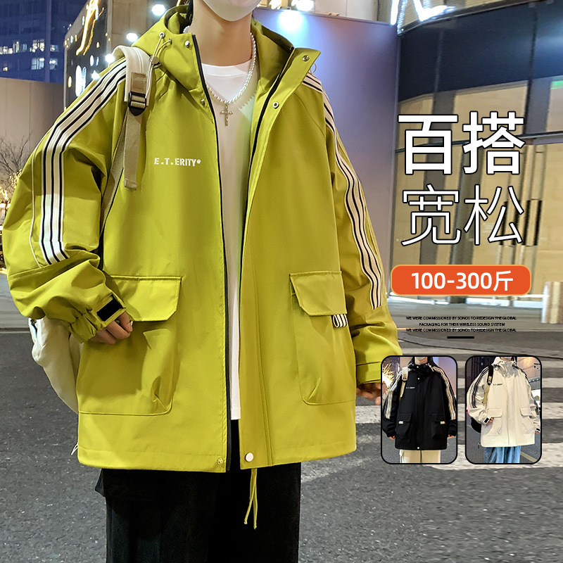 가을 플러스 사이즈 청소년 재킷 남자의 봄과 가을 새로운 유행 브랜드 올 매치 느슨한 플러스 사이즈 지방 플러스 사이즈 남성 자켓