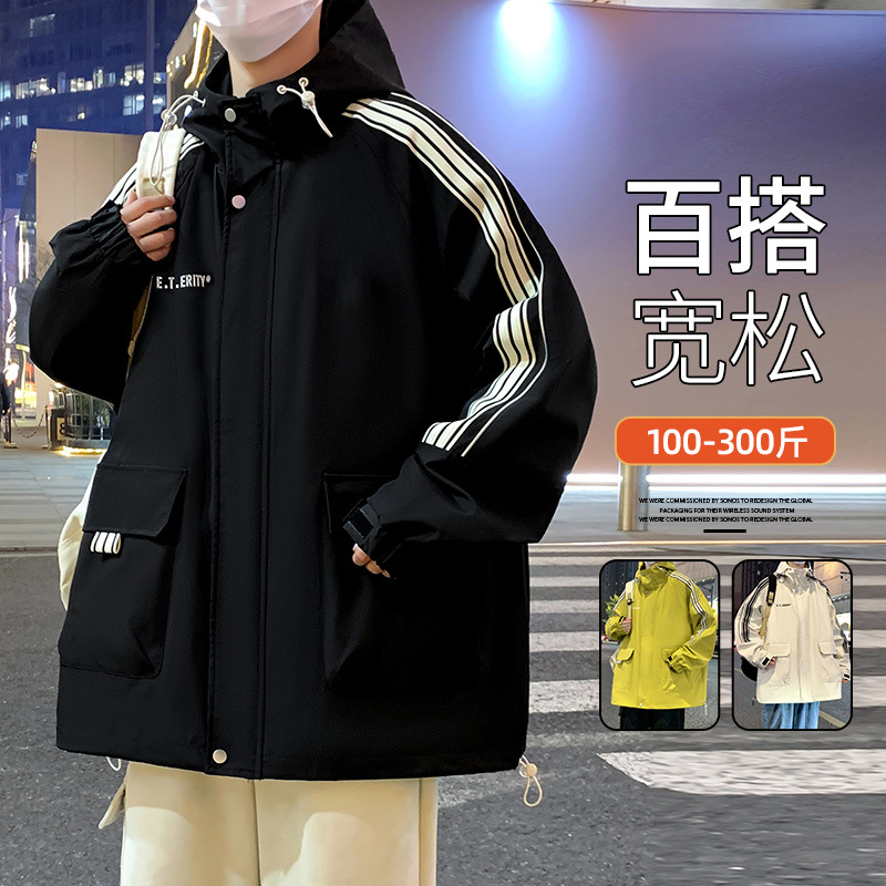 가을 플러스 사이즈 청소년 재킷 남자의 봄과 가을 새로운 유행 브랜드 올 매치 느슨한 플러스 사이즈 지방 플러스 사이즈 남성 자켓스토어 가기