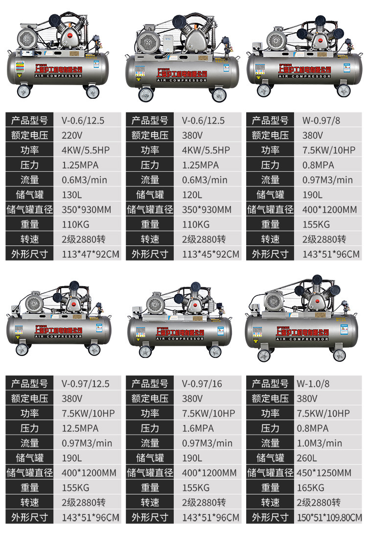 피스톤 공기 압축기 산업 등급 대형 380V 고압 공기 펌프 작은 220V 벨트 공기 압축기 증기 펌프