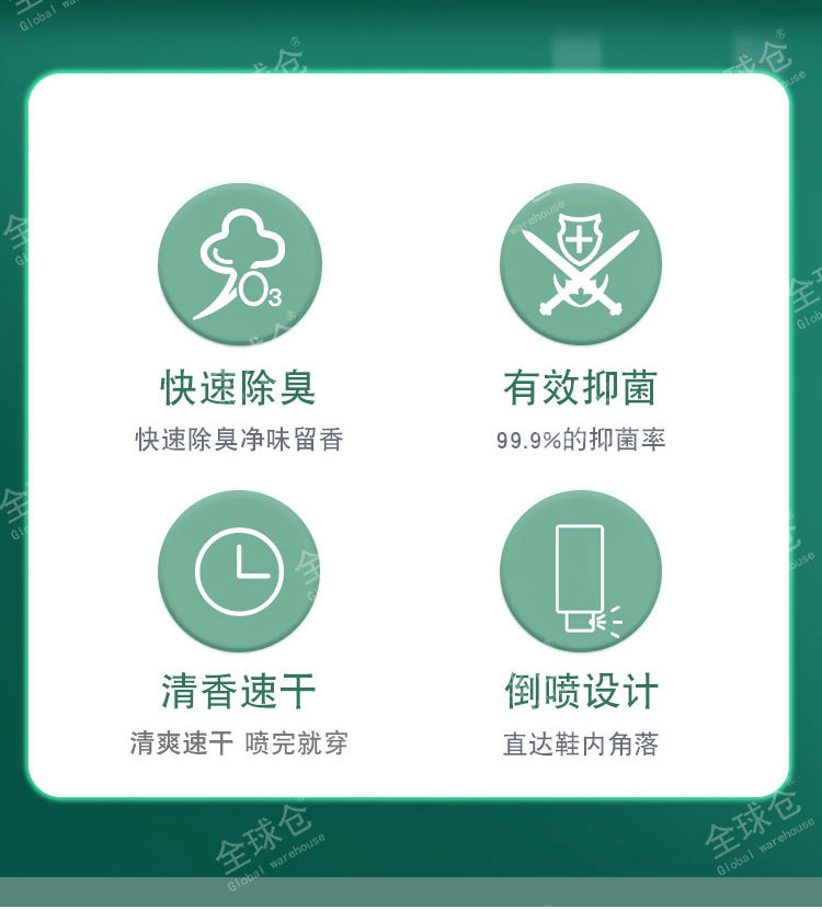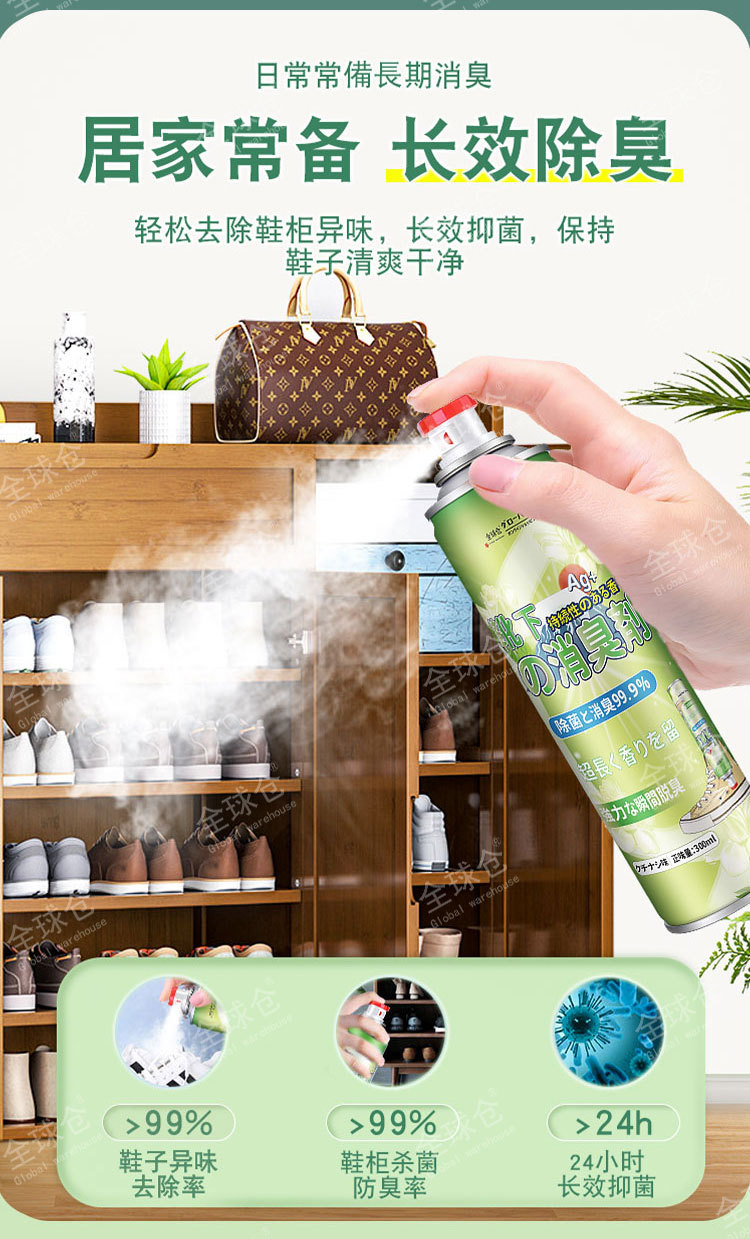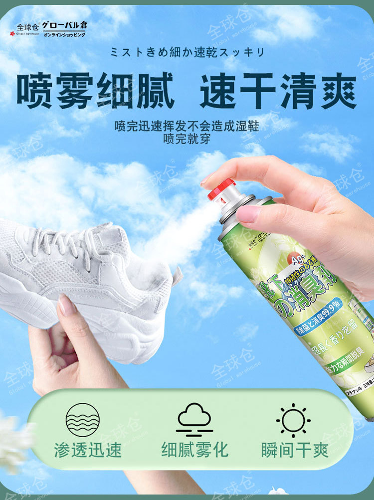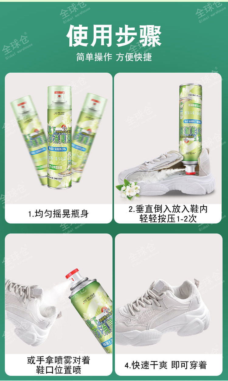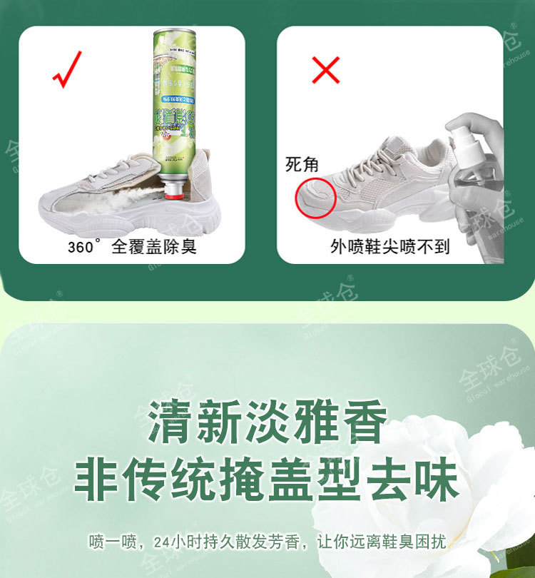 글로벌 창고 신발 및 양말 탈취 및 탈취 스프레이 신선한 신발 및 양말 살균 및 탈취 발 살균 신발 캐비닛 냄새 및 박테리아스토어 가기
