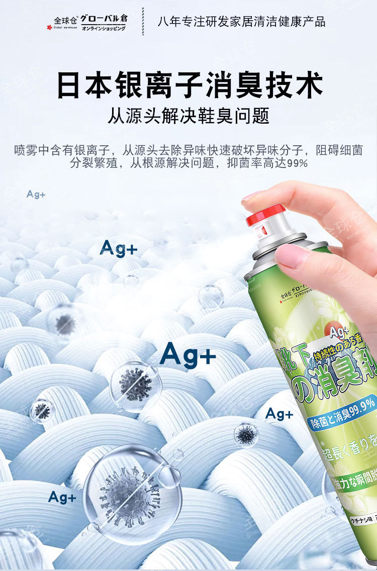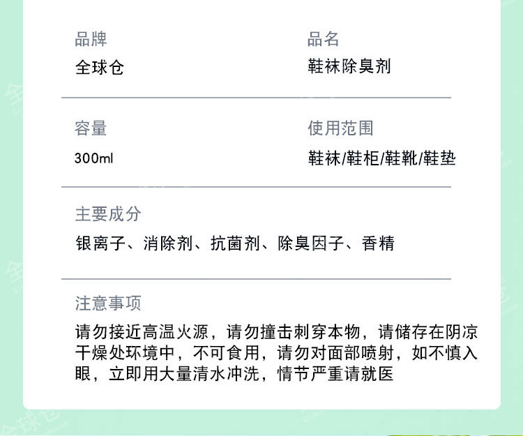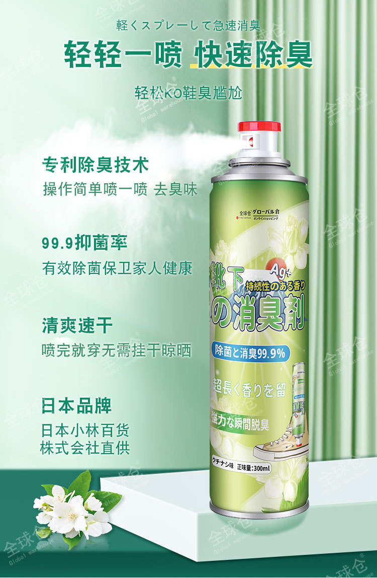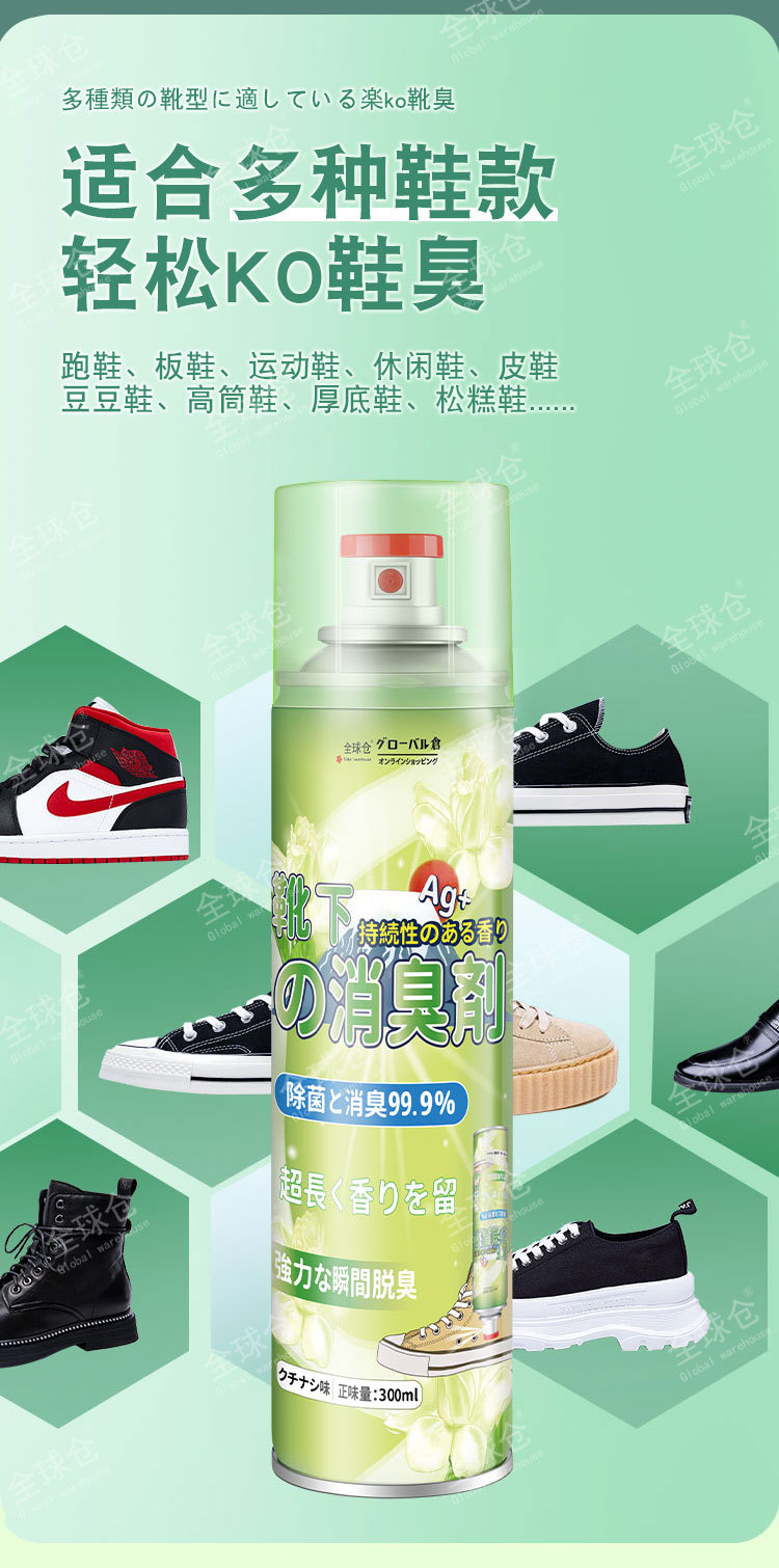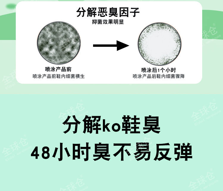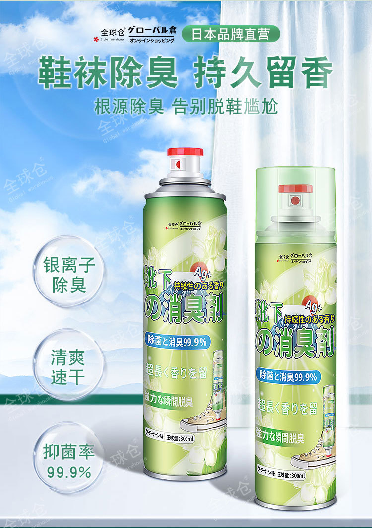 글로벌 창고 신발 및 양말 탈취 및 탈취 스프레이 신선한 신발 및 양말 살균 및 탈취 발 살균 신발 캐비닛 냄새 및 박테리아스토어 가기