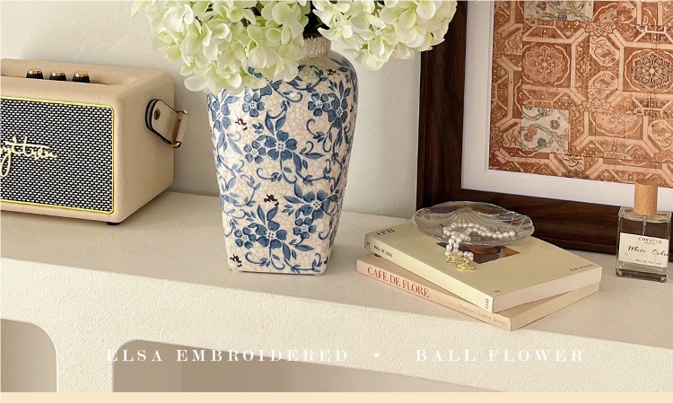 • 엘사 수국 블루 플라워 크랙 청화백자 사각바닥 11가지 + 꽃병