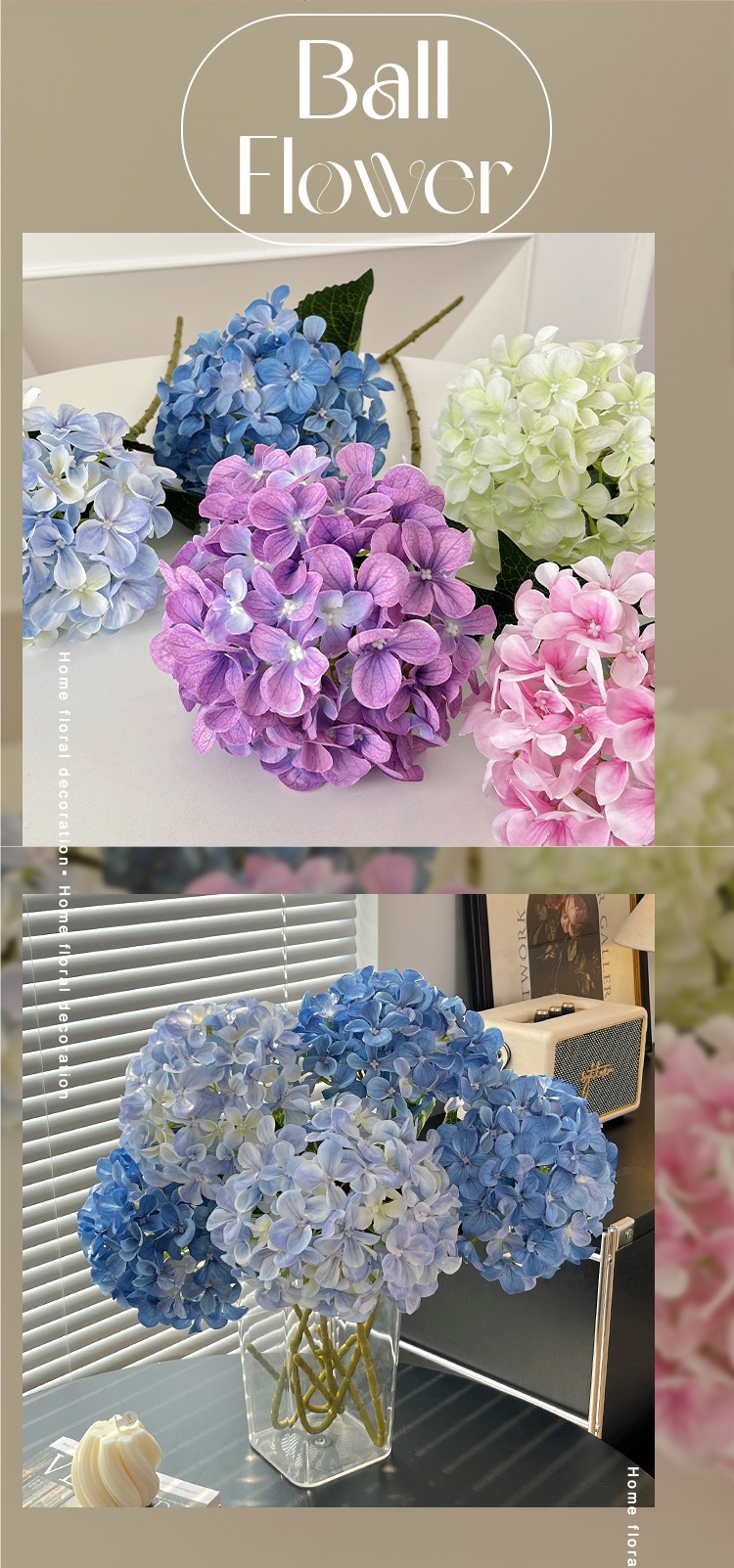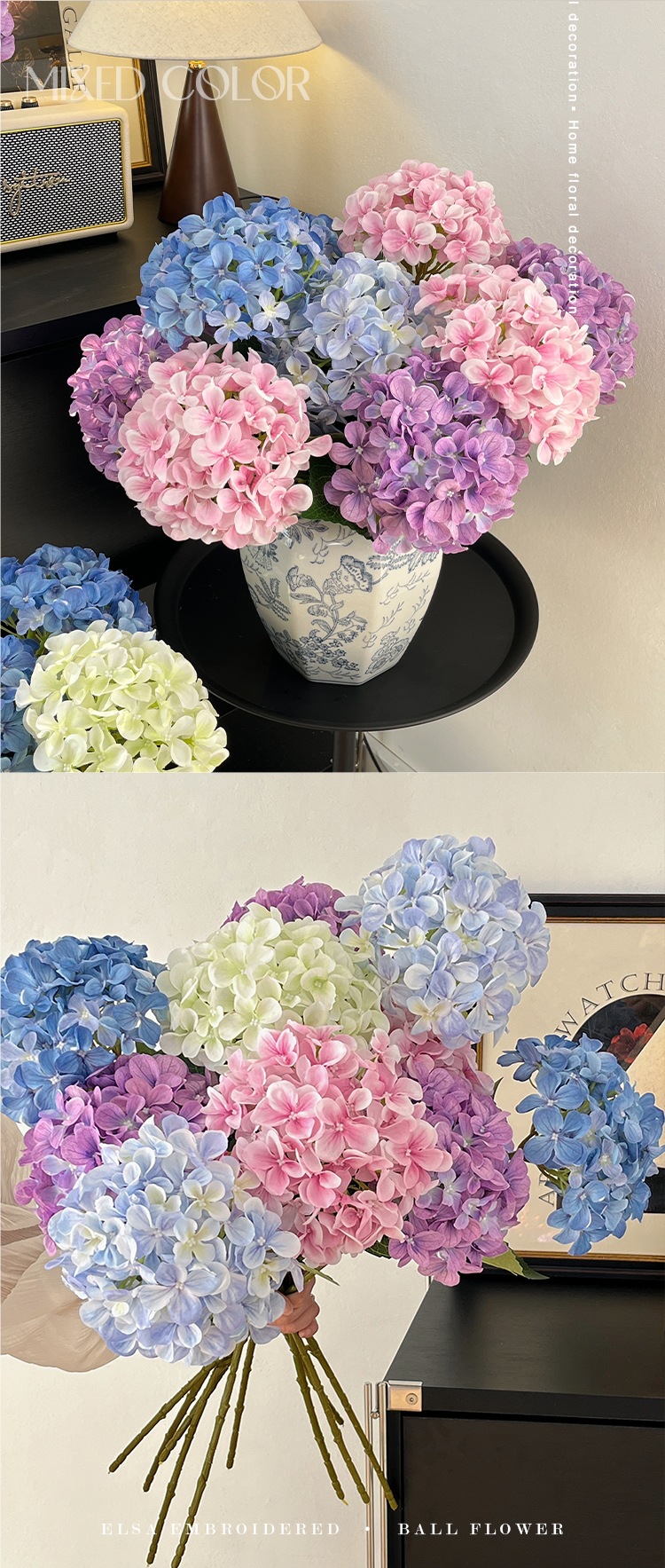 RoomTour3D 인쇄 수국 테이블 꽃 가짜 꽃 꽃 꽃 꽃 배열 장식 꽃 꽃스토어 가기
