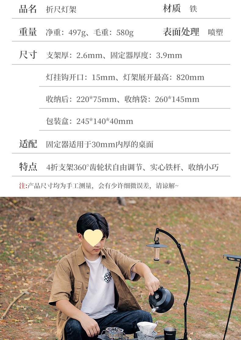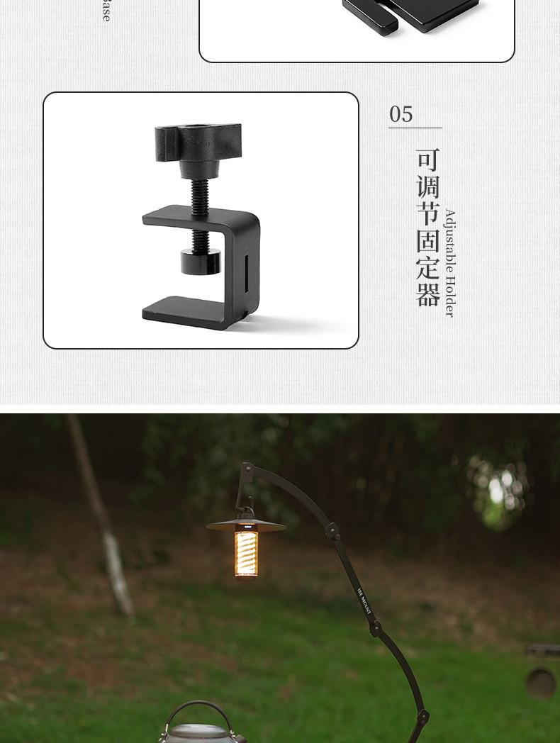 야외 캠핑 램프 스탠드 멀티 폼 조정 가능한 캠핑 램프 스탠드 휴대용 금속 긴 팔 테이블 램프 스탠드스토어 가기