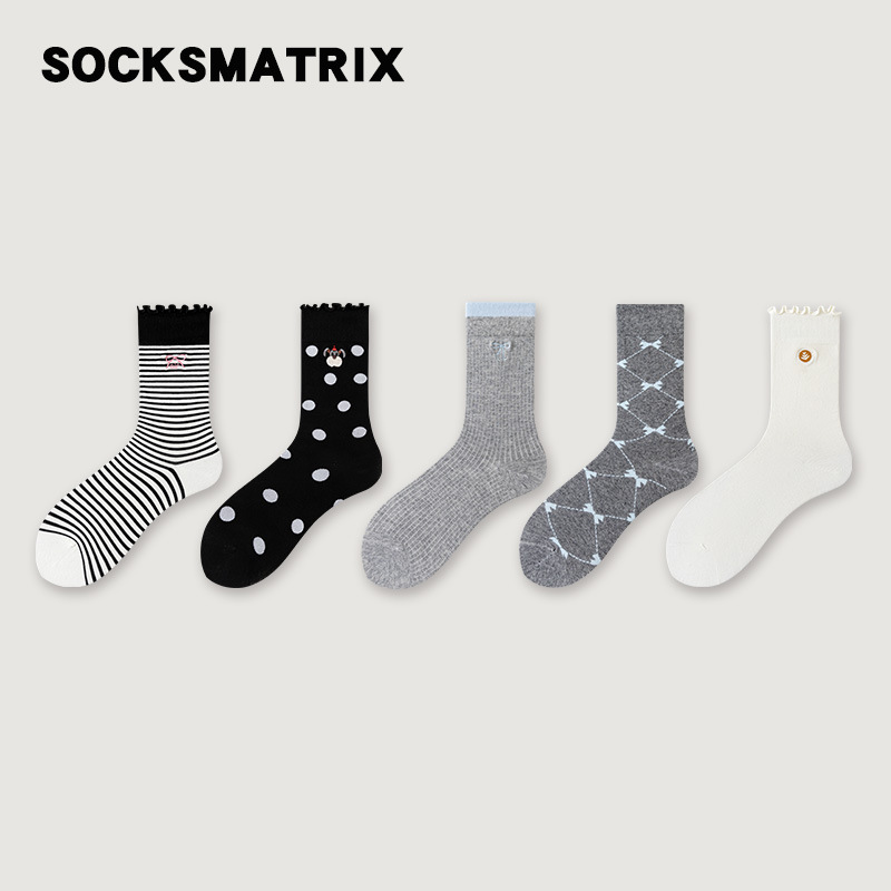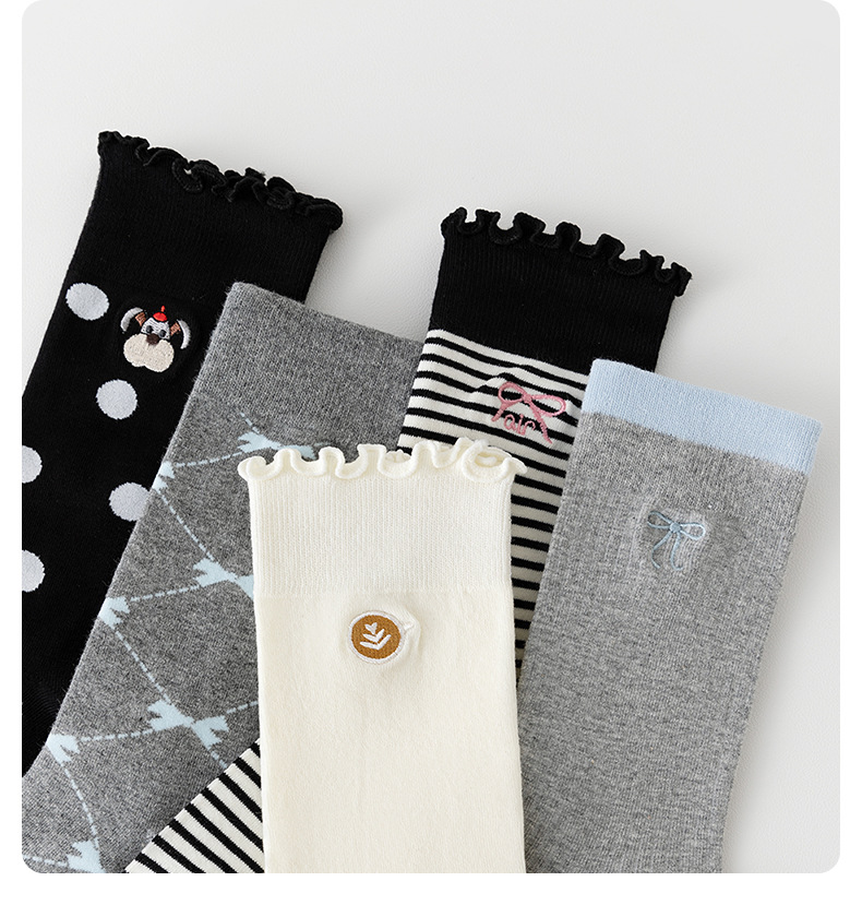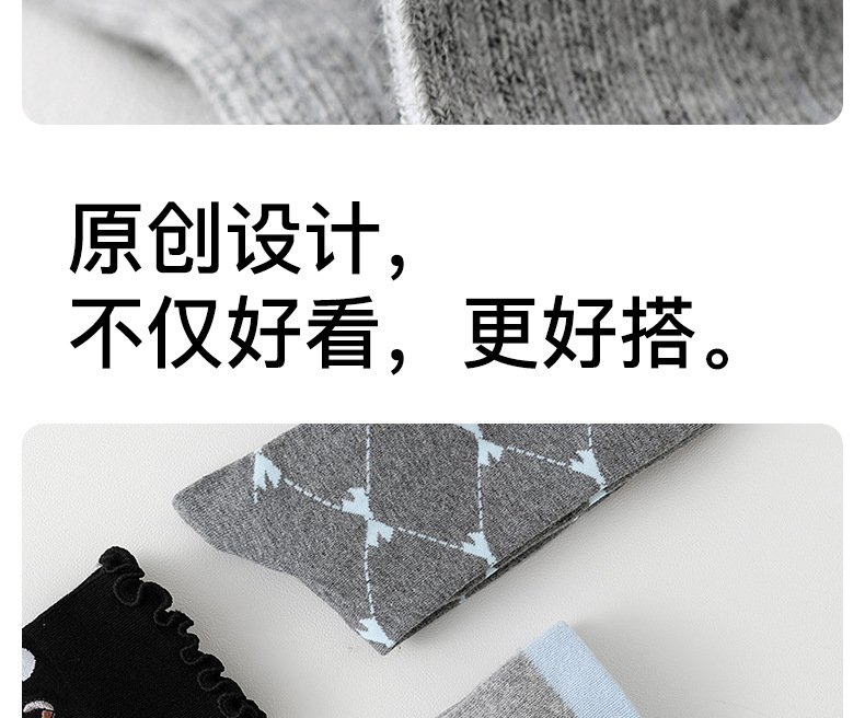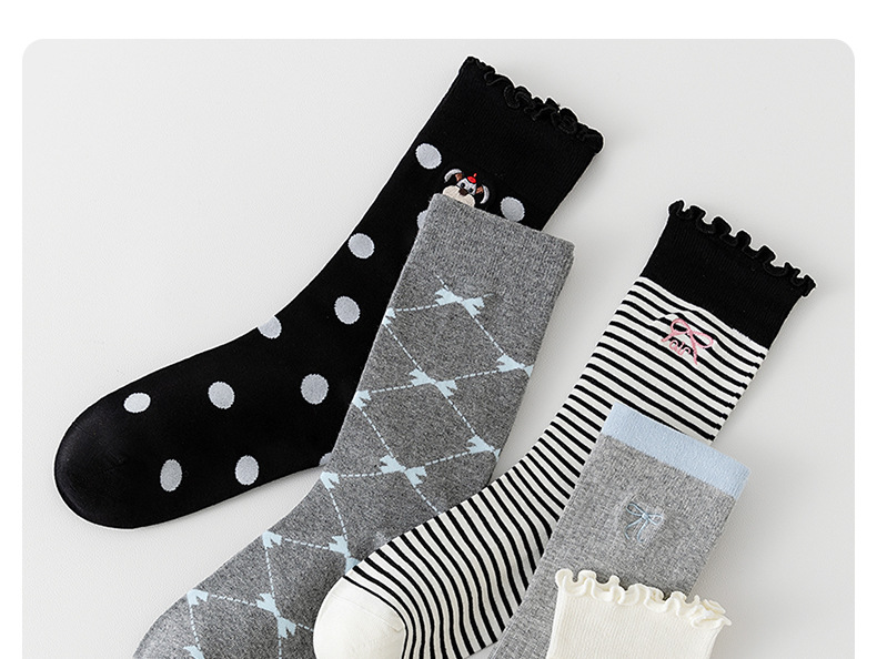 【한국식 심플】여성용 양말 5켤레 세트, 가을 겨울 패션, 샤크 팬츠 외출용 중목 양말스토어 가기