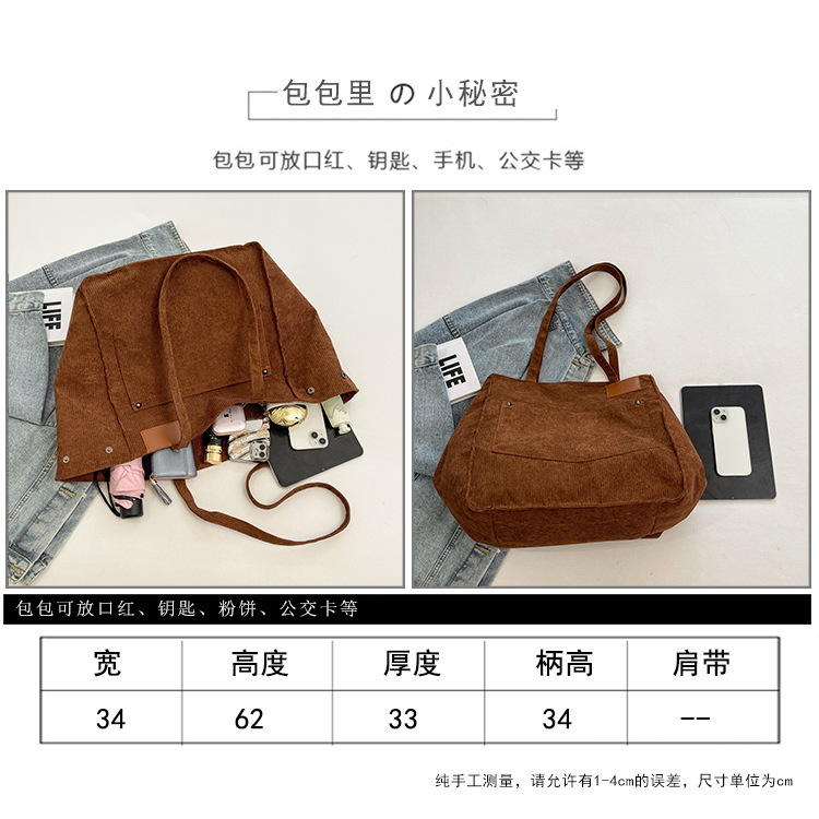 국경 새 코듀로이 토트 백 여성 대용량 학생 클래스 패션 한국 스타일 간단한 올 매치 숄더 백팩스토어 가기