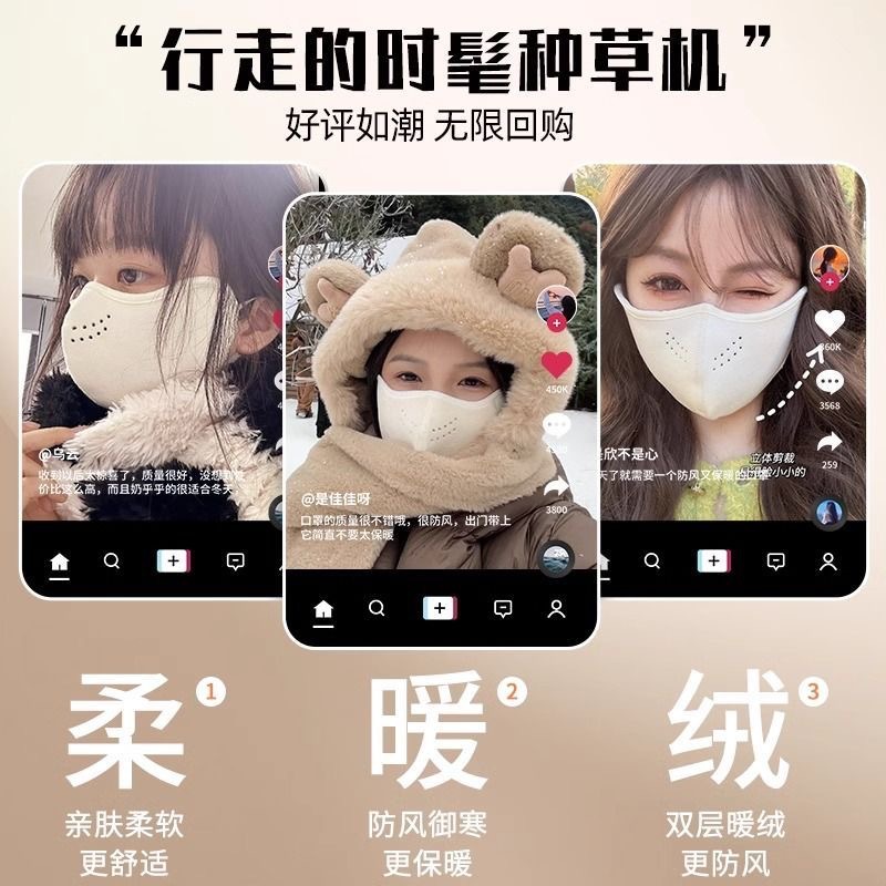 여자 가을과 겨울 사이클링 스키 스포츠 방풍 마스크 3 차원 방한용 남성용 특별 호주 벨벳 열 마스크스토어 가기