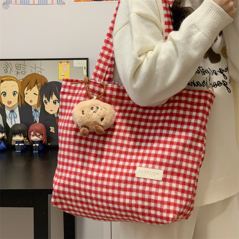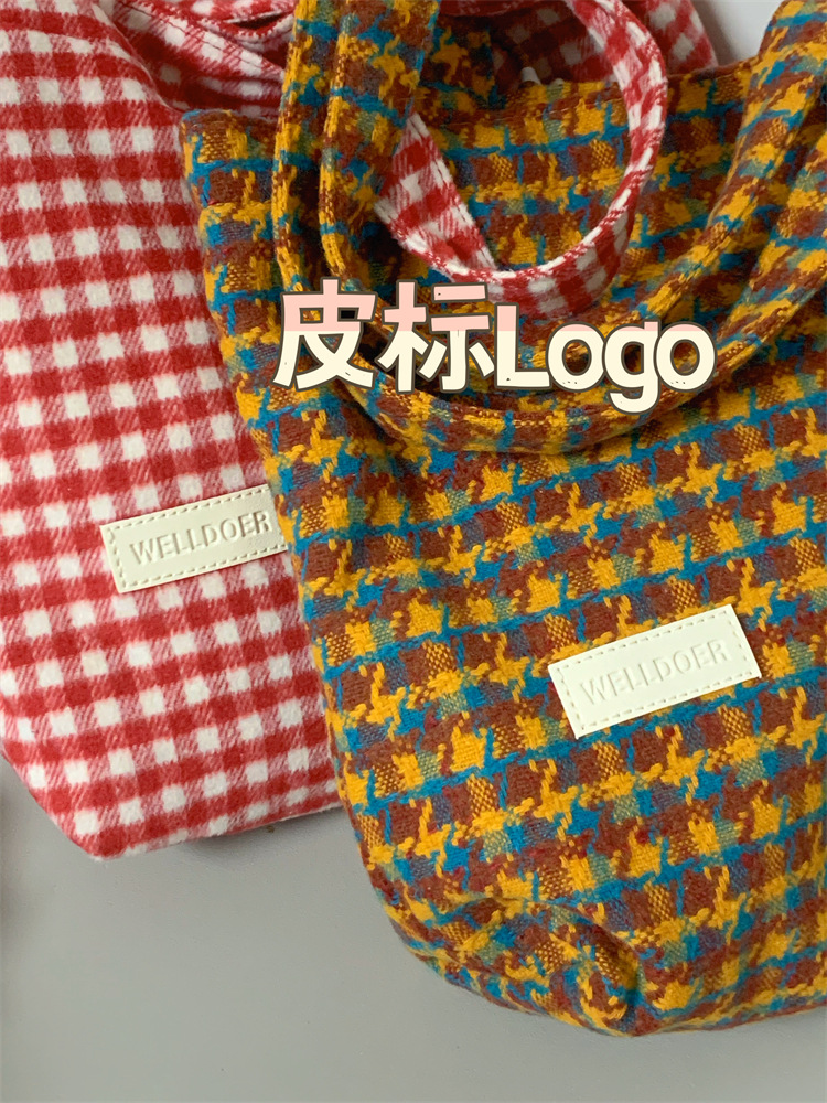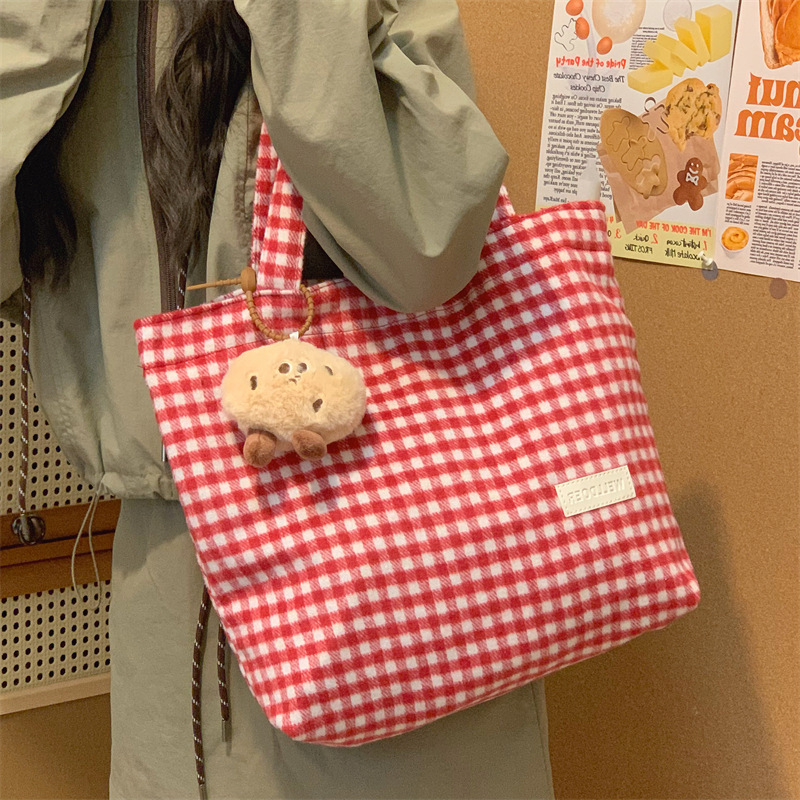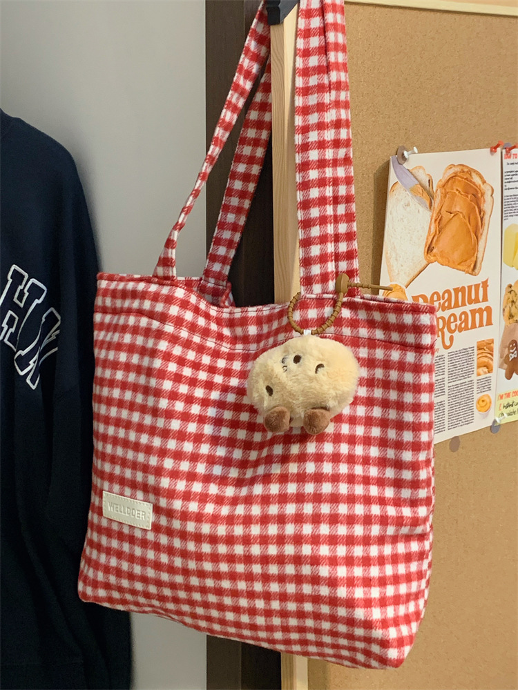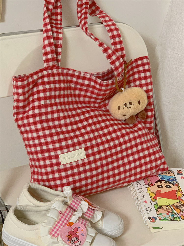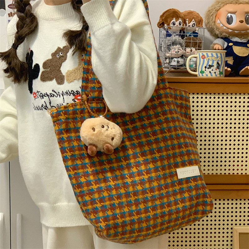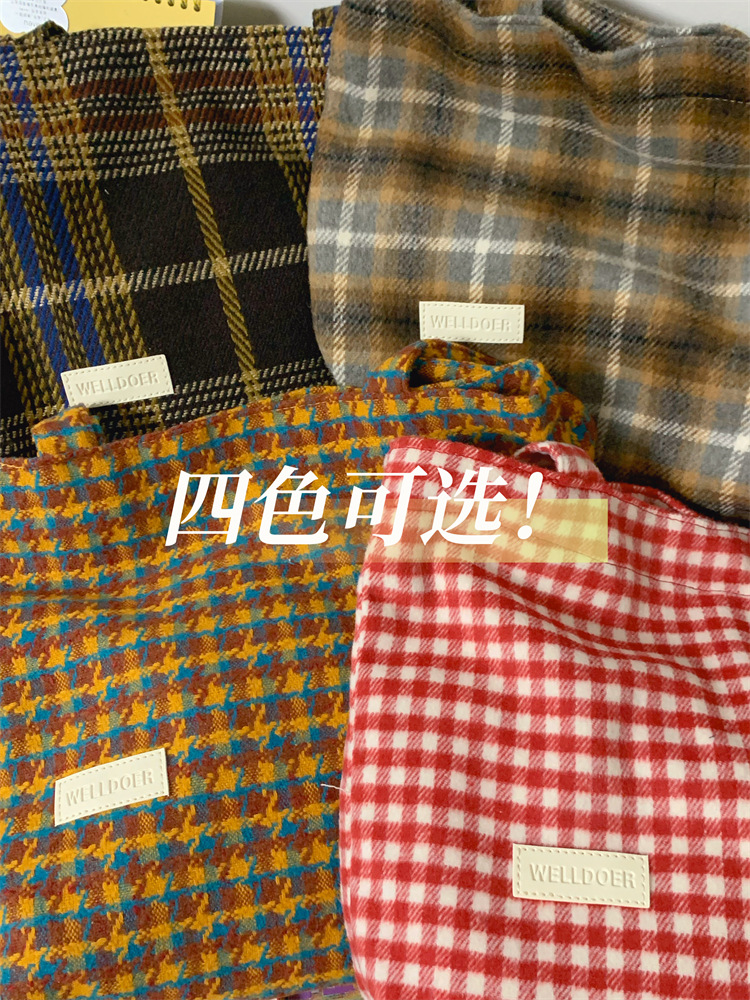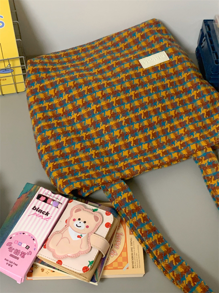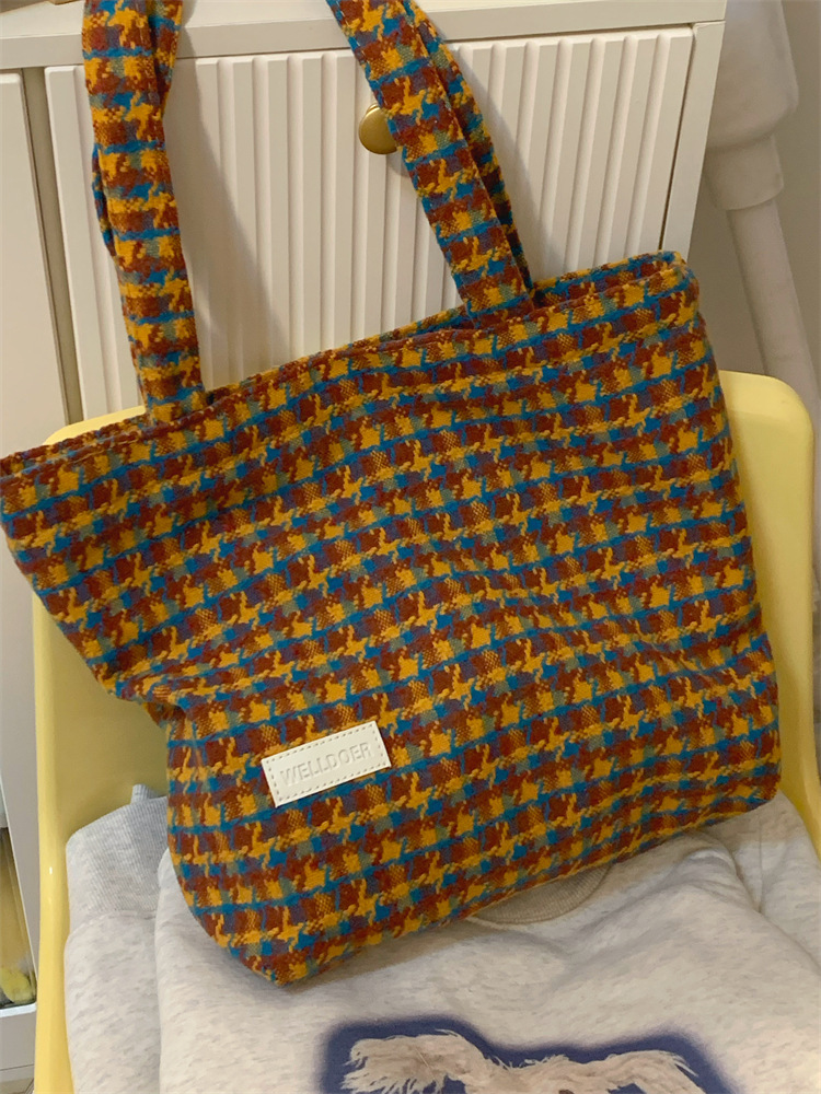 게으른 스타일 이른 가을 새 스타일 체크 무늬 모직 어깨 가방 캐주얼 쇼핑백 레트로 트렌디 한 올 매치 통근 속옷 가방