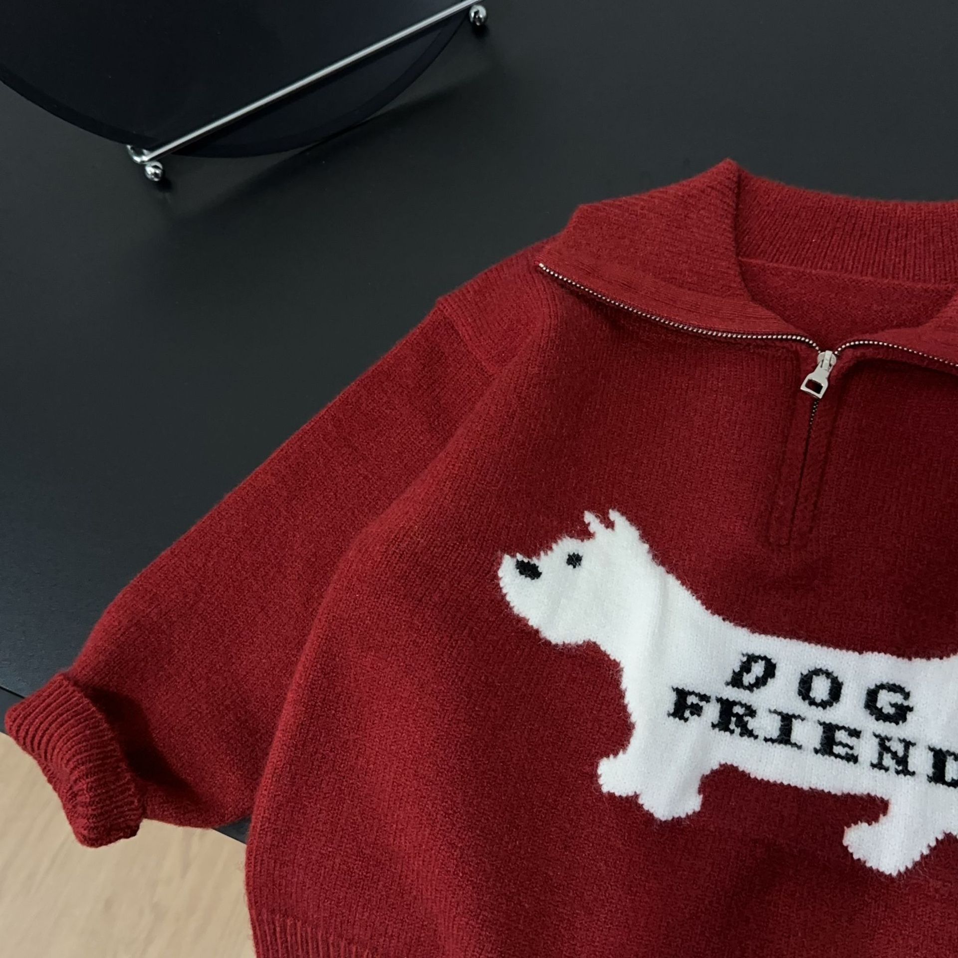 어린이 두꺼운 암호화 스웨터 2024 가을 겨울 새 소년과 소녀 한국 신년 스웨터 베이비 폴로 탑 트렌디