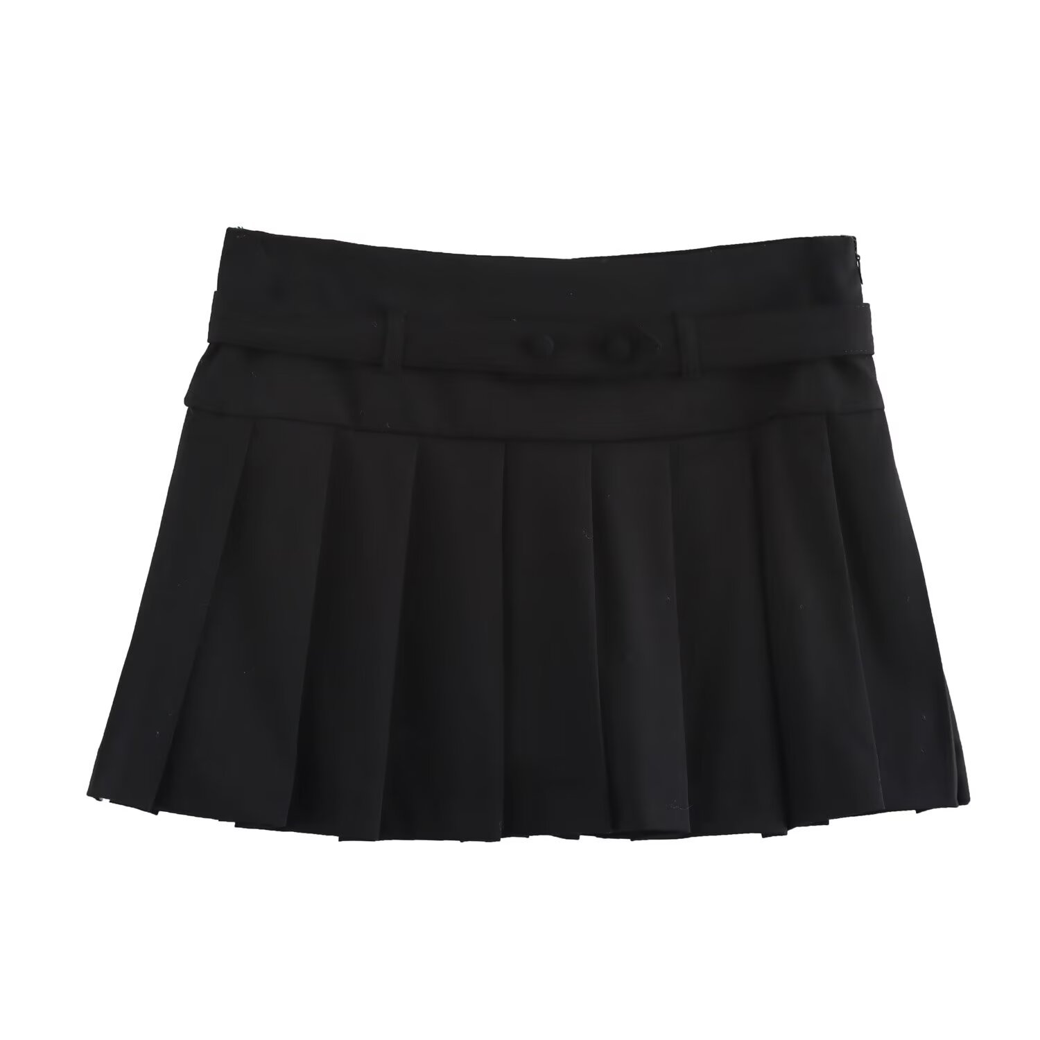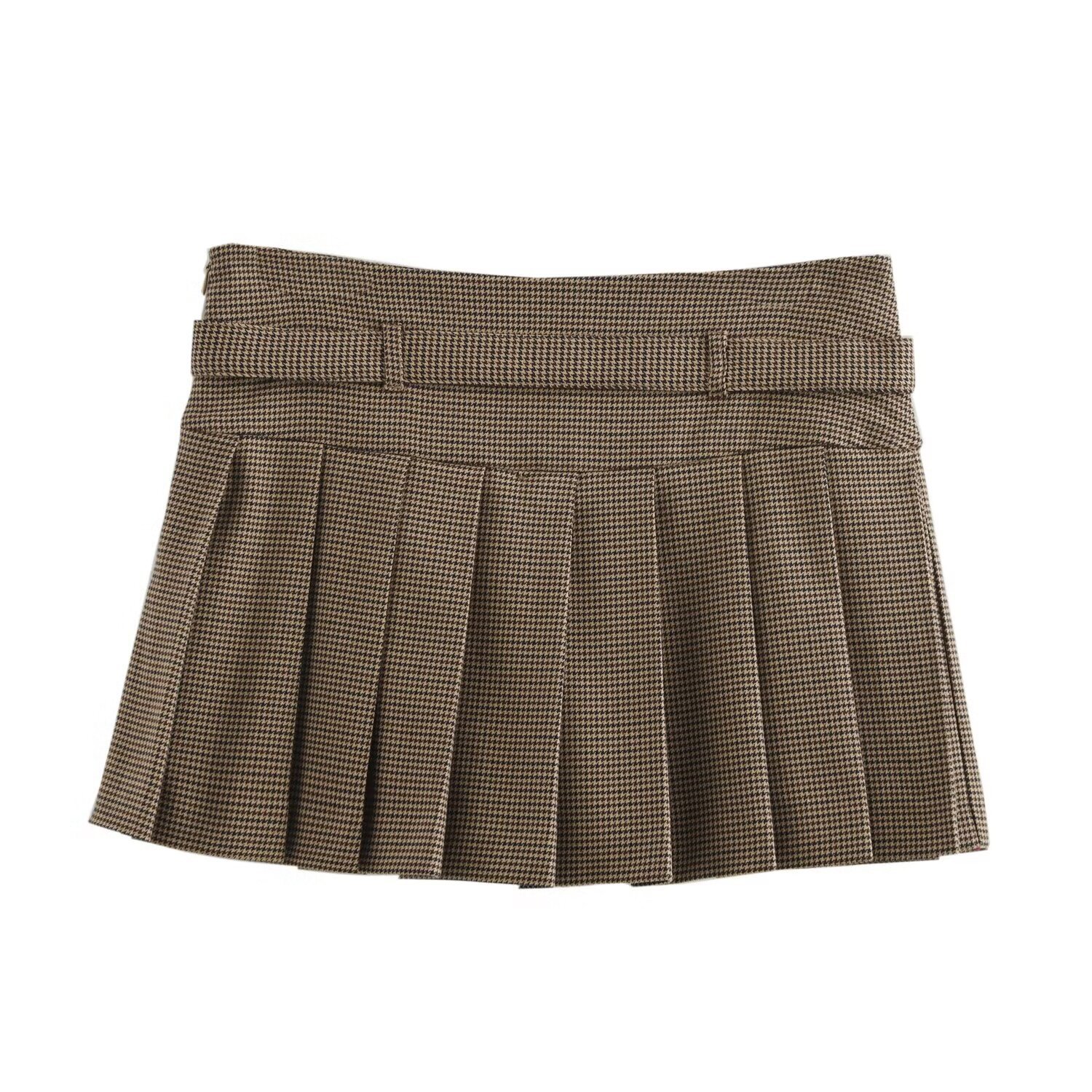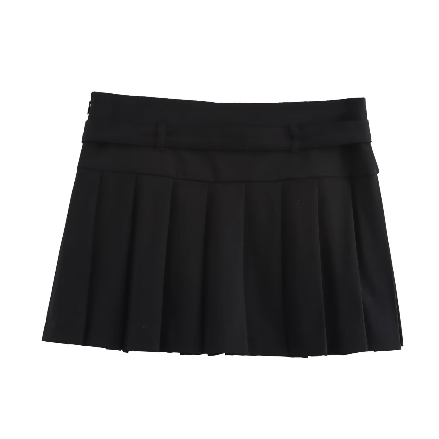 ZA 도매 2025 새로운 패션 캐주얼 조커 하이 허리 벨트 주름 미니 스커트 3067404스토어 가기